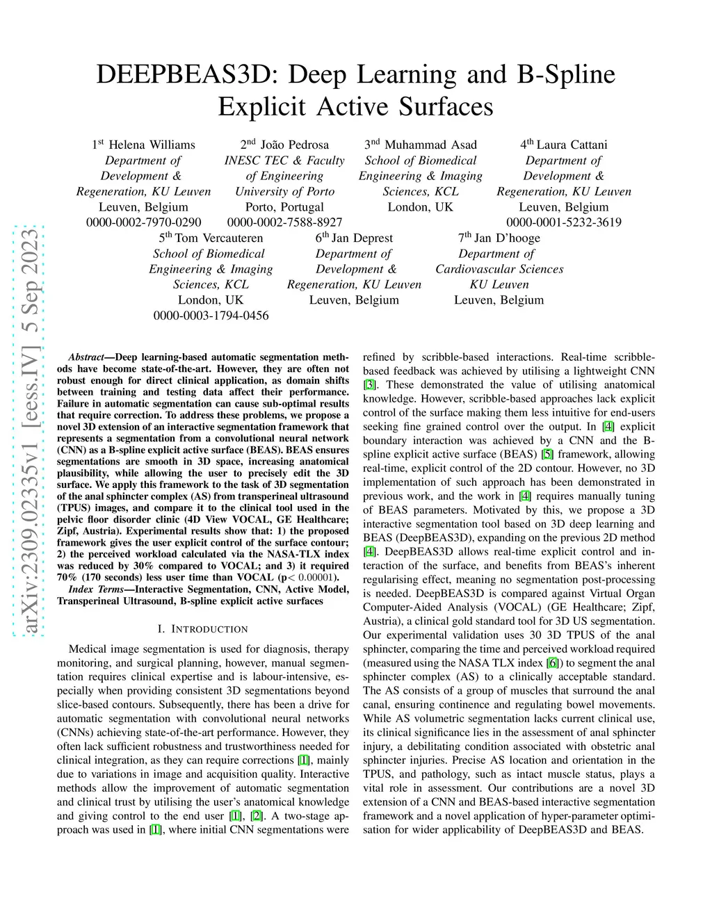 DEEPBEAS3D: Deep Learning and B-Spline Explicit Active Surfaces