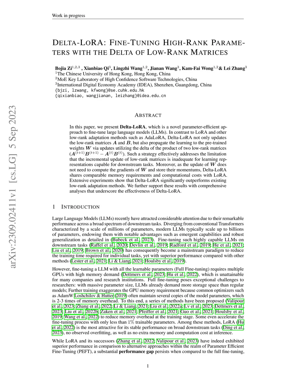 Delta-LoRA: Fine-Tuning High-Rank Parameters with the Delta of Low-Rank