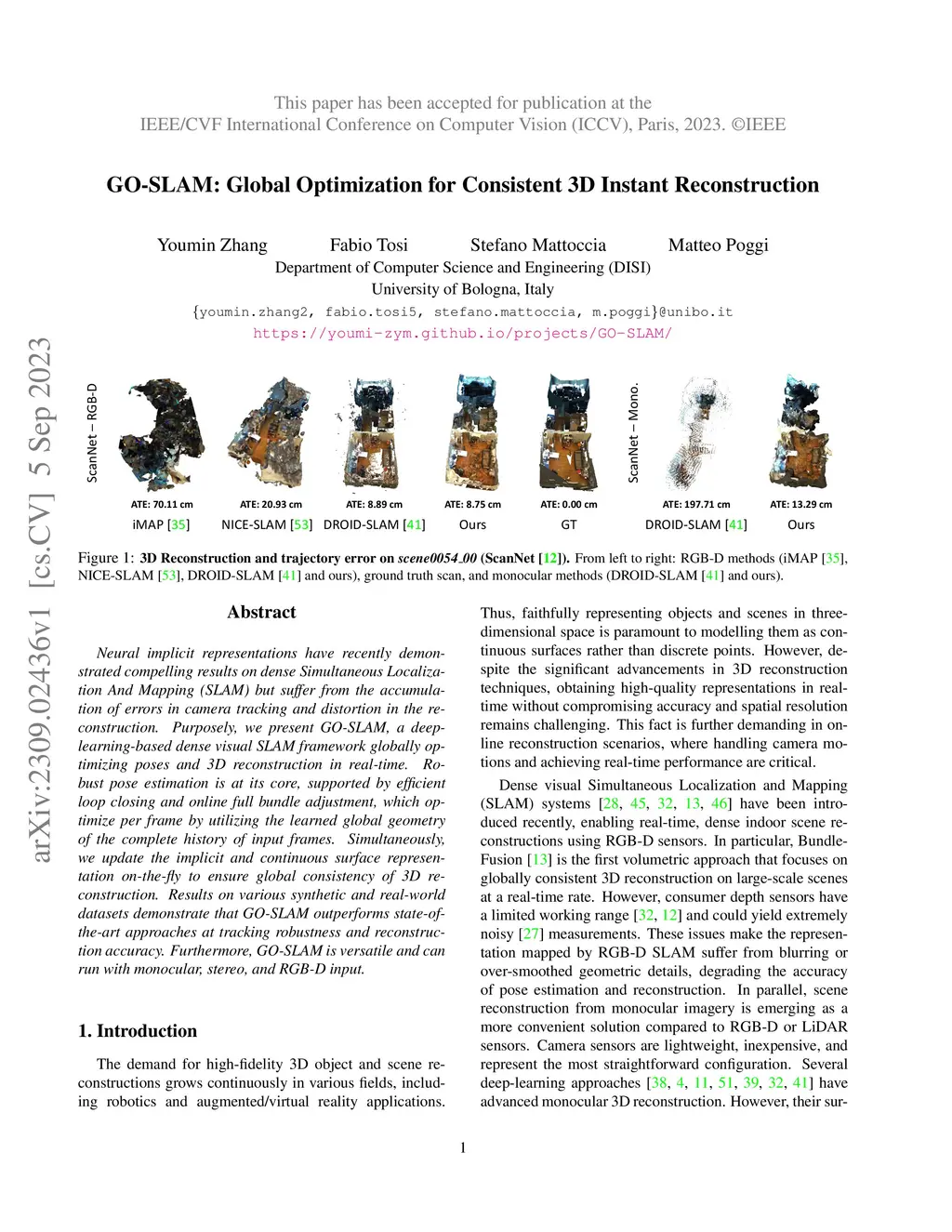 GO-SLAM: Global Optimization for Consistent 3D Instant Reconstruction