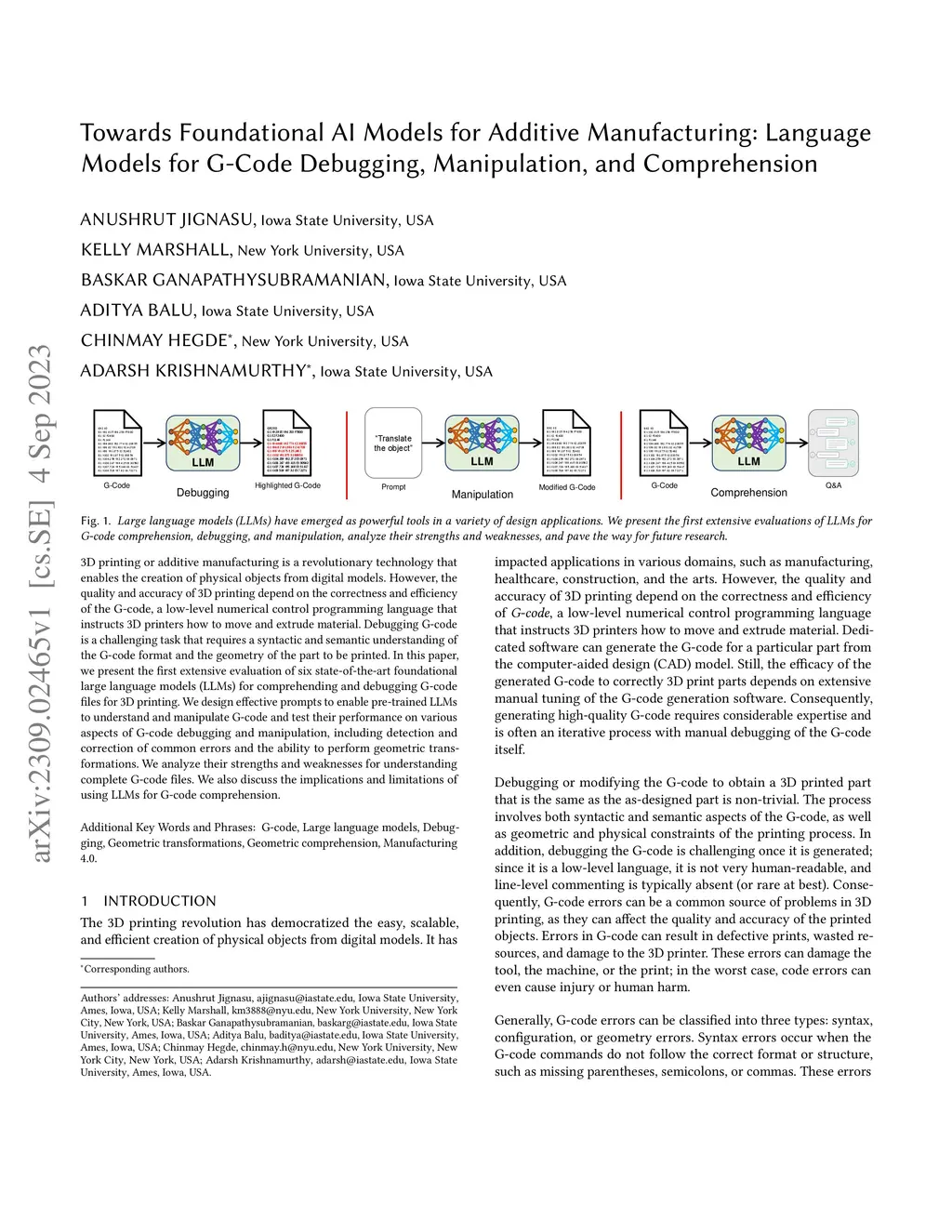 Models for G-Code Debugging, Manipulation, and Comprehension