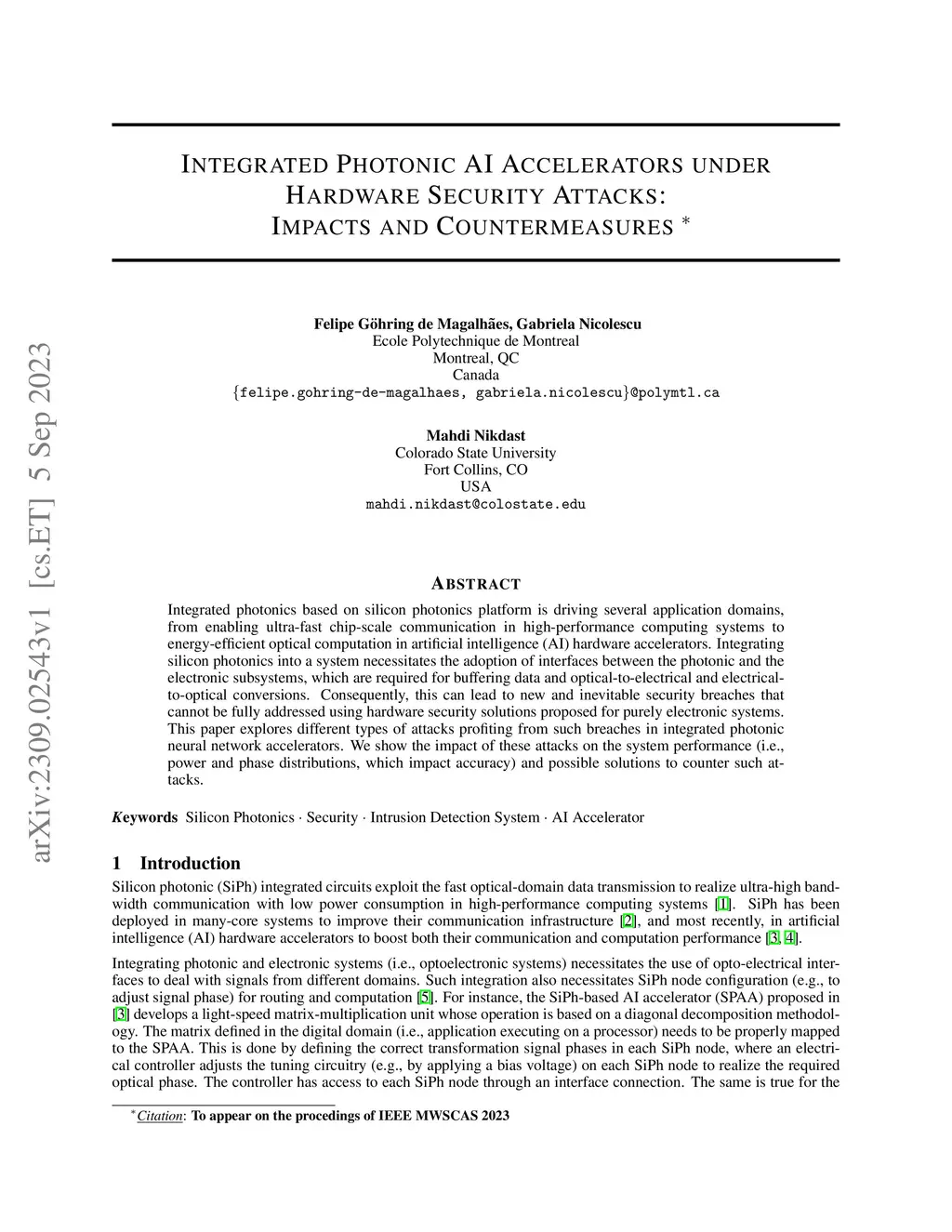 Integrated photonics based on silicon photonics platform is driving several application domains, from enabling ultra-fast chip-scale communication in high-performance computing systems to energy-efficient optical computation in artificial intelligence (AI) hardware accelerators. Integrating silicon photonics into a system necessitates the adoption of interfaces between the photonic and the electronic subsystems, which are required for buffering data and optical-to-electrical and electrical-to-optical conversions. Consequently, this can lead to new and inevitable security breaches that cannot be fully addressed using hardware security solutions proposed for purely electronic systems. This paper explores different types of attacks profiting from such breaches in integrated photonic neural network accelerators. We show the impact of these attacks on the system performance (i.e., power and phase distributions, which impact accuracy) and possible solutions to counter such attacks.