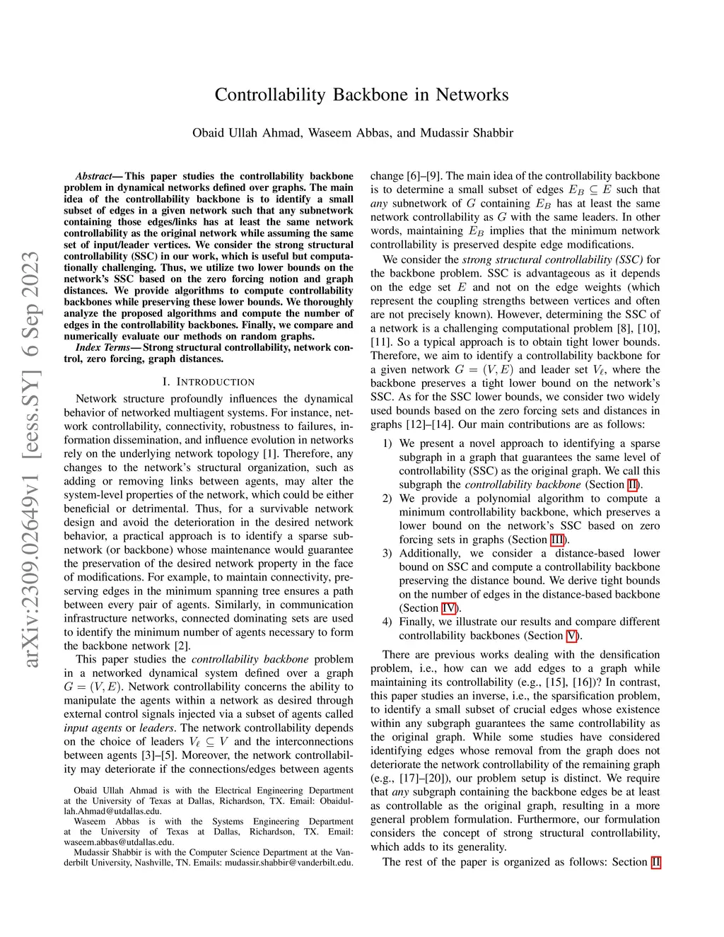 This paper studies the controllability backbone problem in dynamical networks defined over graphs. The main idea of the controllability backbone is to identify a small subset of edges in a given network such that any subnetwork containing those edges/links has at least the same network controllability as the original network while assuming the same set of input/leader vertices. We consider the strong structural controllability (SSC) in our work, which is useful but computationally challenging. Thus, we utilize two lower bounds on the network's SSC based on the zero forcing notion and graph distances. We provide algorithms to compute controllability backbones while preserving these lower bounds. We thoroughly analyze the proposed algorithms and compute the number of edges in the controllability backbones. Finally, we compare and numerically evaluate our methods on random graphs.