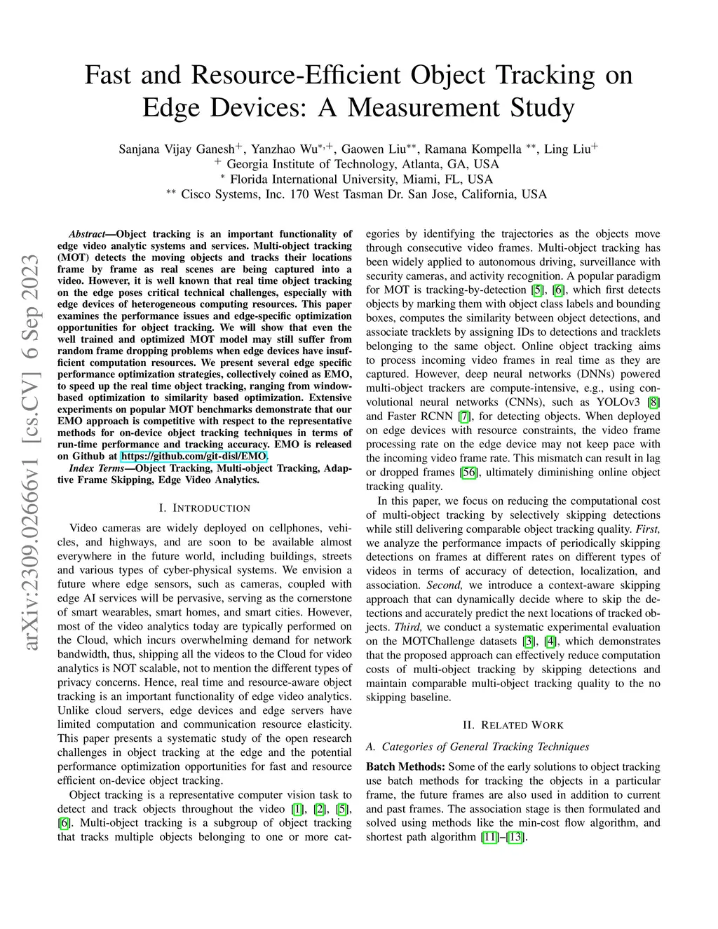 Object tracking is an important functionality of edge video analytic systems and services. Multi-object tracking (MOT) detects the moving objects and tracks their locations frame by frame as real scenes are being captured into a video. However, it is well known that real time object tracking on the edge poses critical technical challenges, especially with edge devices of heterogeneous computing resources. This paper examines the performance issues and edge-specific optimization opportunities for object tracking. We will show that even the well trained and optimized MOT model may still suffer from random frame dropping problems when edge devices have insufficient computation resources. We present several edge specific performance optimization strategies, collectively coined as EMO, to speed up the real time object tracking, ranging from window-based optimization to similarity based optimization. Extensive experiments on popular MOT benchmarks demonstrate that our EMO approach is competitive with respect to the representative methods for on-device object tracking techniques in terms of run-time performance and tracking accuracy. EMO is released on Github at https://github.com/git-disl/EMO.