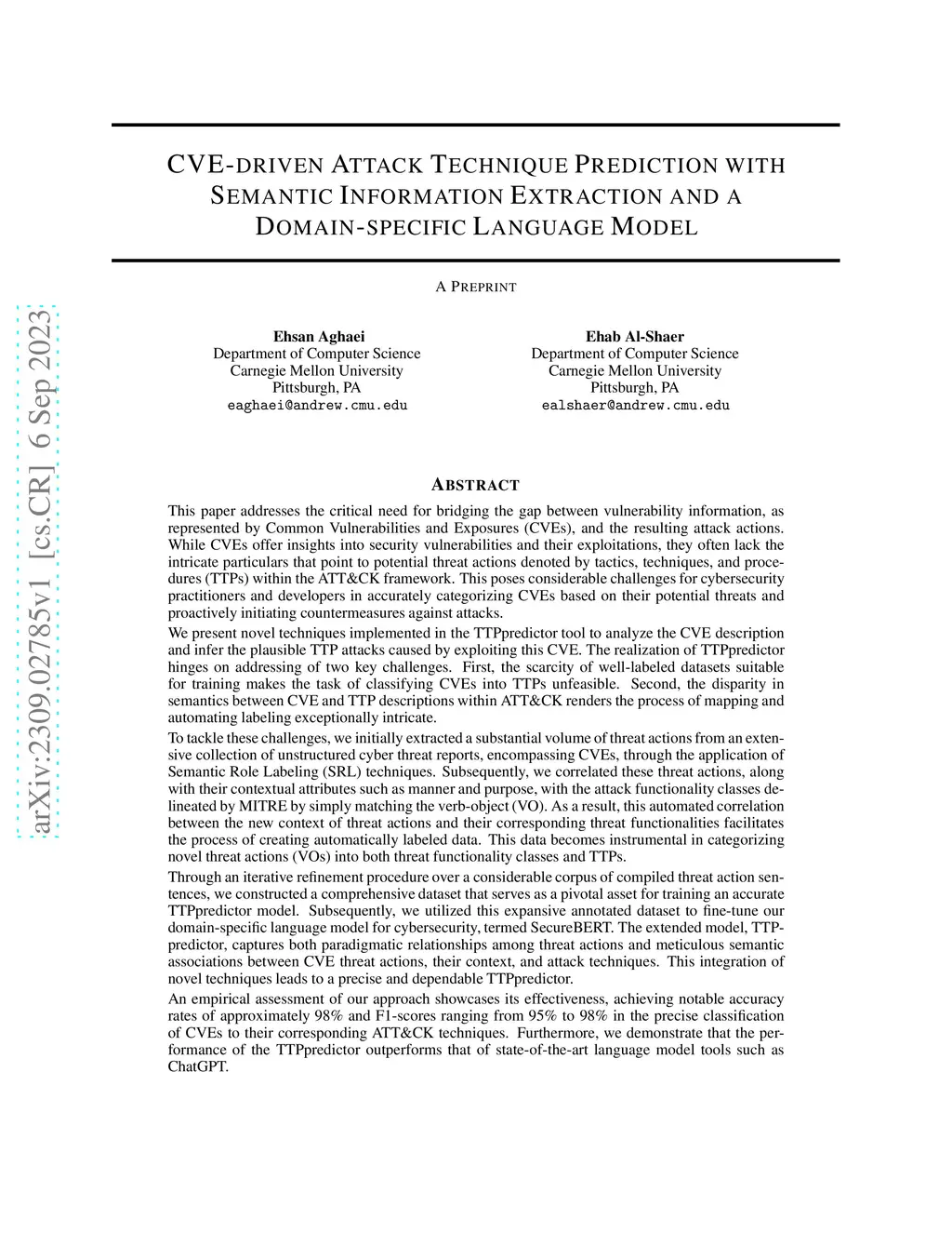 This paper addresses a critical challenge in cybersecurity: the gap between vulnerability information represented by Common Vulnerabilities and Exposures (CVEs) and the resulting cyberattack actions. CVEs provide insights into vulnerabilities, but often lack details on potential threat actions (tactics, techniques, and procedures, or TTPs) within the ATT&CK framework. This gap hinders accurate CVE categorization and proactive countermeasure initiation. The paper introduces the TTPpredictor tool, which uses innovative techniques to analyze CVE descriptions and infer plausible TTP attacks resulting from CVE exploitation. TTPpredictor overcomes challenges posed by limited labeled data and semantic disparities between CVE and TTP descriptions. It initially extracts threat actions from unstructured cyber threat reports using Semantic Role Labeling (SRL) techniques. These actions, along with their contextual attributes, are correlated with MITRE's attack functionality classes. This automated correlation facilitates the creation of labeled data, essential for categorizing novel threat actions into threat functionality classes and TTPs. The paper presents an empirical assessment, demonstrating TTPpredictor's effectiveness with accuracy rates of approximately 98% and F1-scores ranging from 95% to 98% in precise CVE classification to ATT&CK techniques. TTPpredictor outperforms state-of-the-art language model tools like ChatGPT. Overall, this paper offers a robust solution for linking CVEs to potential attack techniques, enhancing cybersecurity practitioners' ability to proactively identify and mitigate threats.