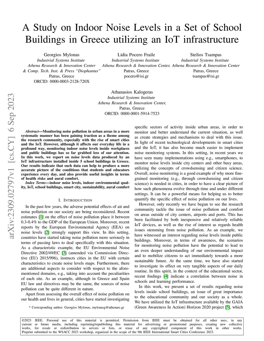 A Study on Indoor Noise Levels in a Set of School Buildings in Greece