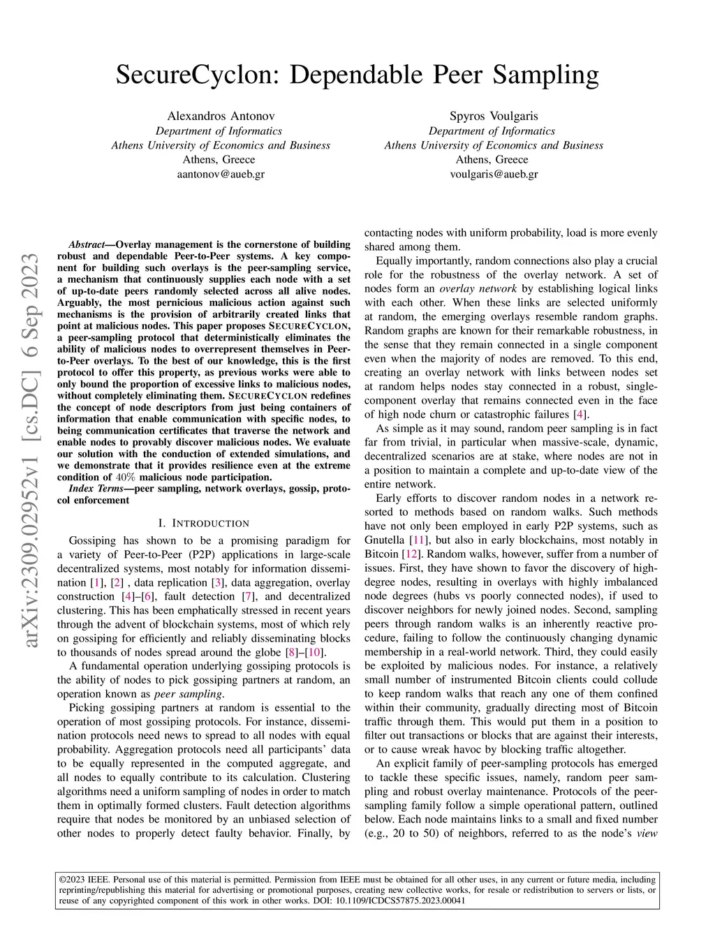 SecureCyclon: Dependable Peer Sampling