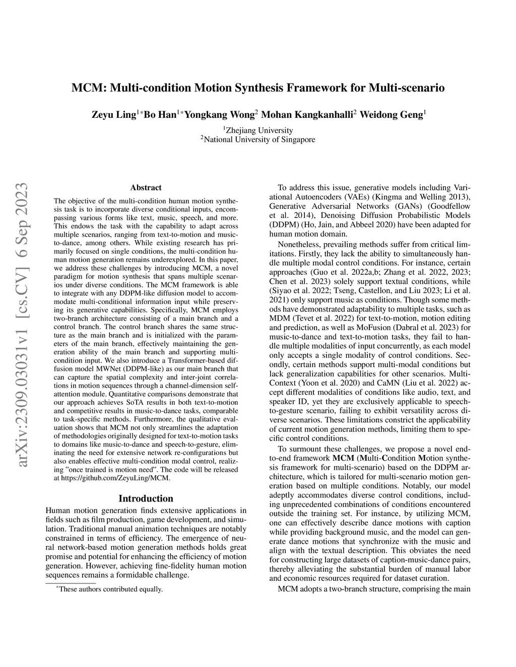 MCM: Multi-condition Motion Synthesis Framework for Multi-scenario