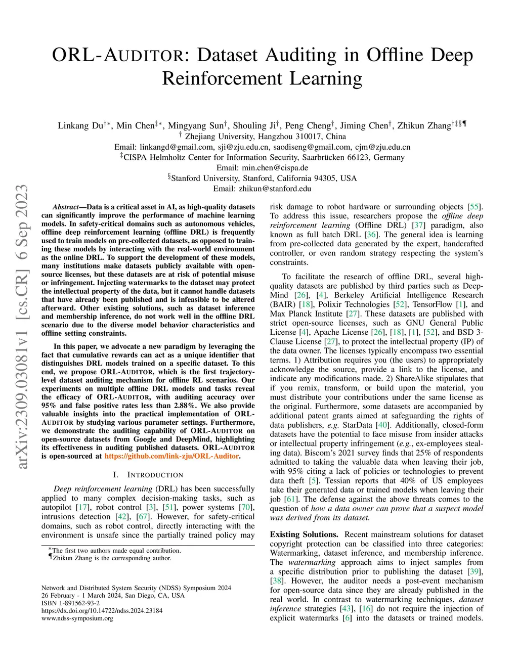 ORL-AUDITOR: Dataset Auditing in Offline Deep Reinforcement Learning