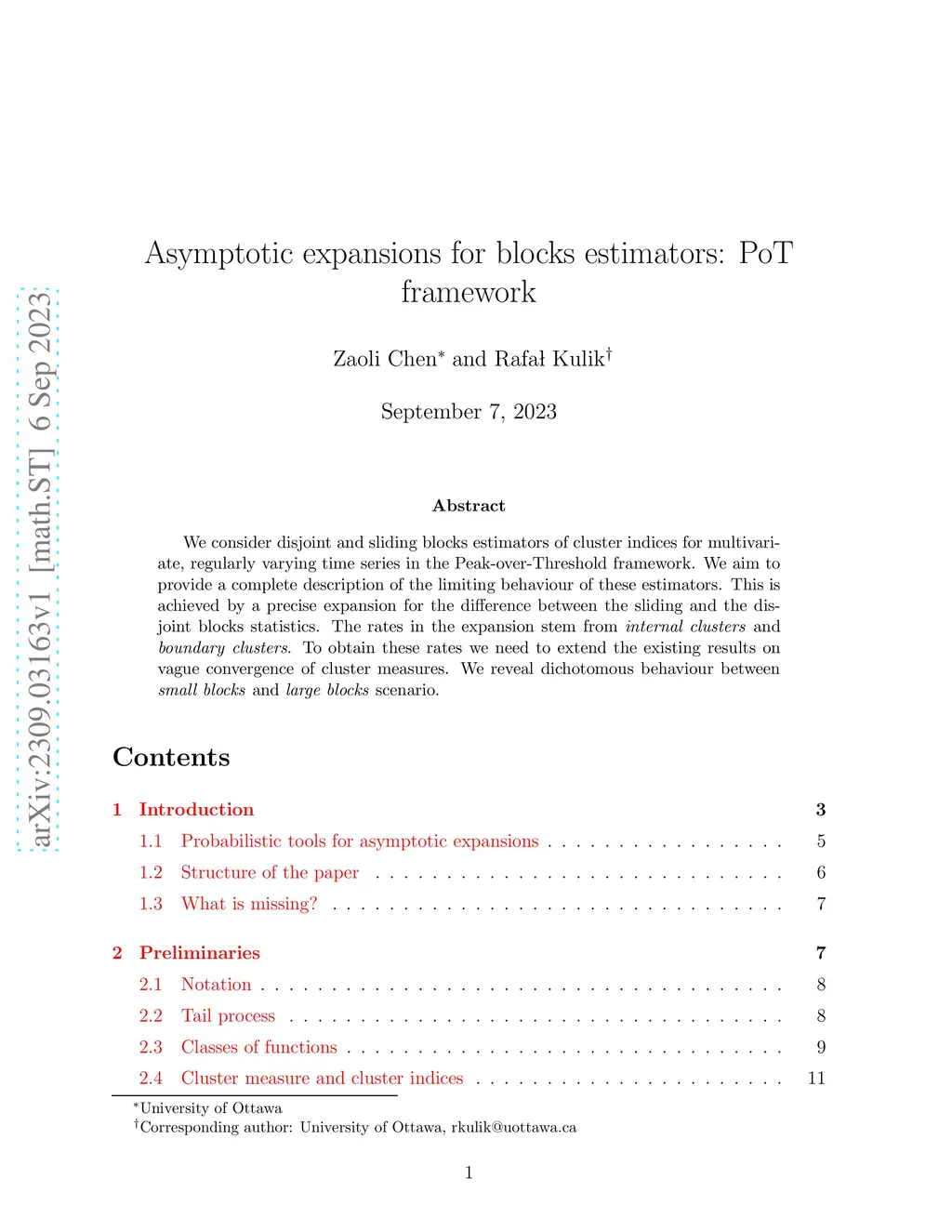 We consider disjoint and sliding blocks estimators of cluster indices for multivariate, regularly varying time series in the Peak-over-Threshold framework. We aim to provide a complete description of the limiting behaviour of these estimators. This is achieved by a precise expansion for the difference between the sliding and the disjoint blocks statistics. The rates in the expansion stem from internal clusters and boundary clusters. To obtain these rates we need to extend the existing results on vague convergence of cluster measures. We reveal dichotomous behaviour between small blocks and large blocks scenario.