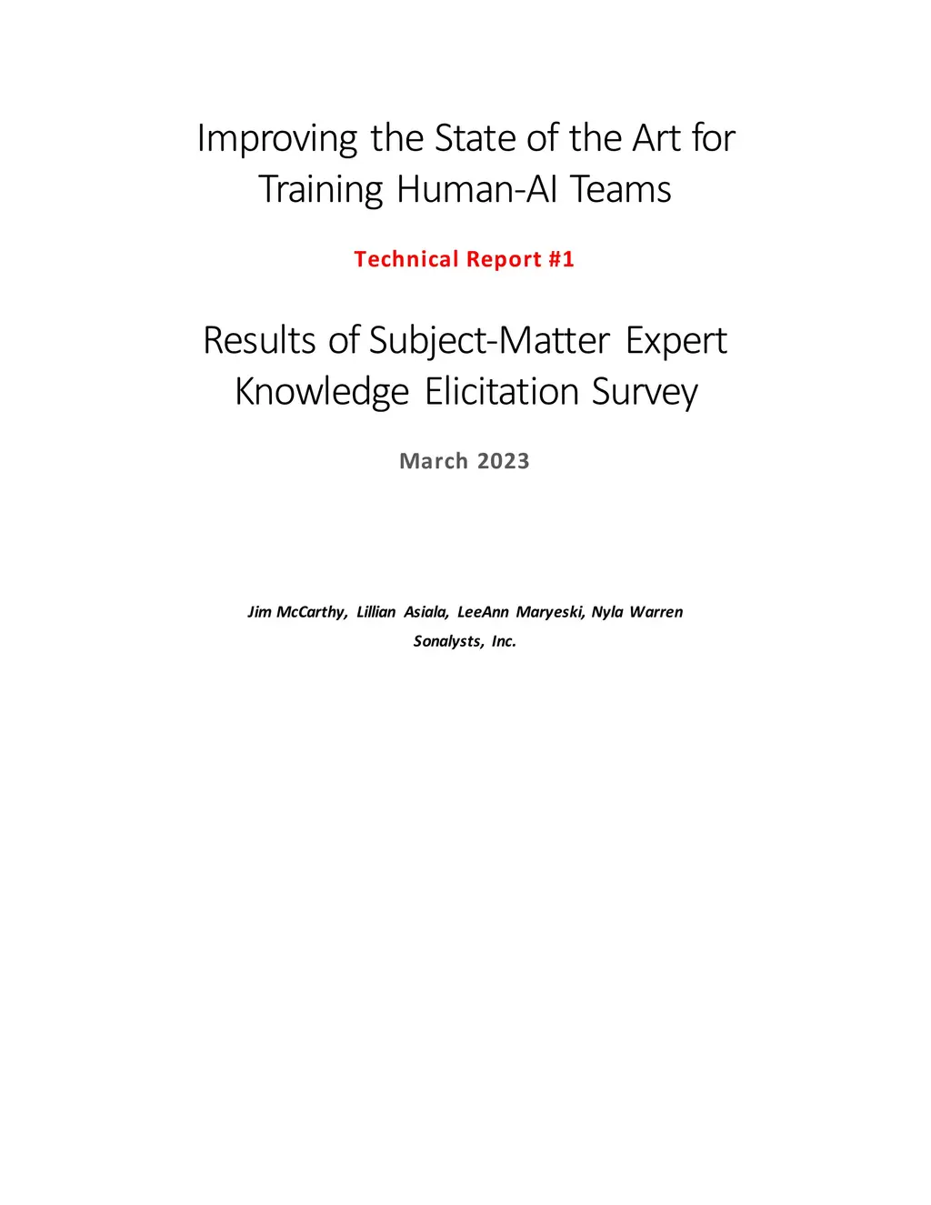 Report #1 -- Results of Subject-Matter Expert Knowledge Elicitation Survey