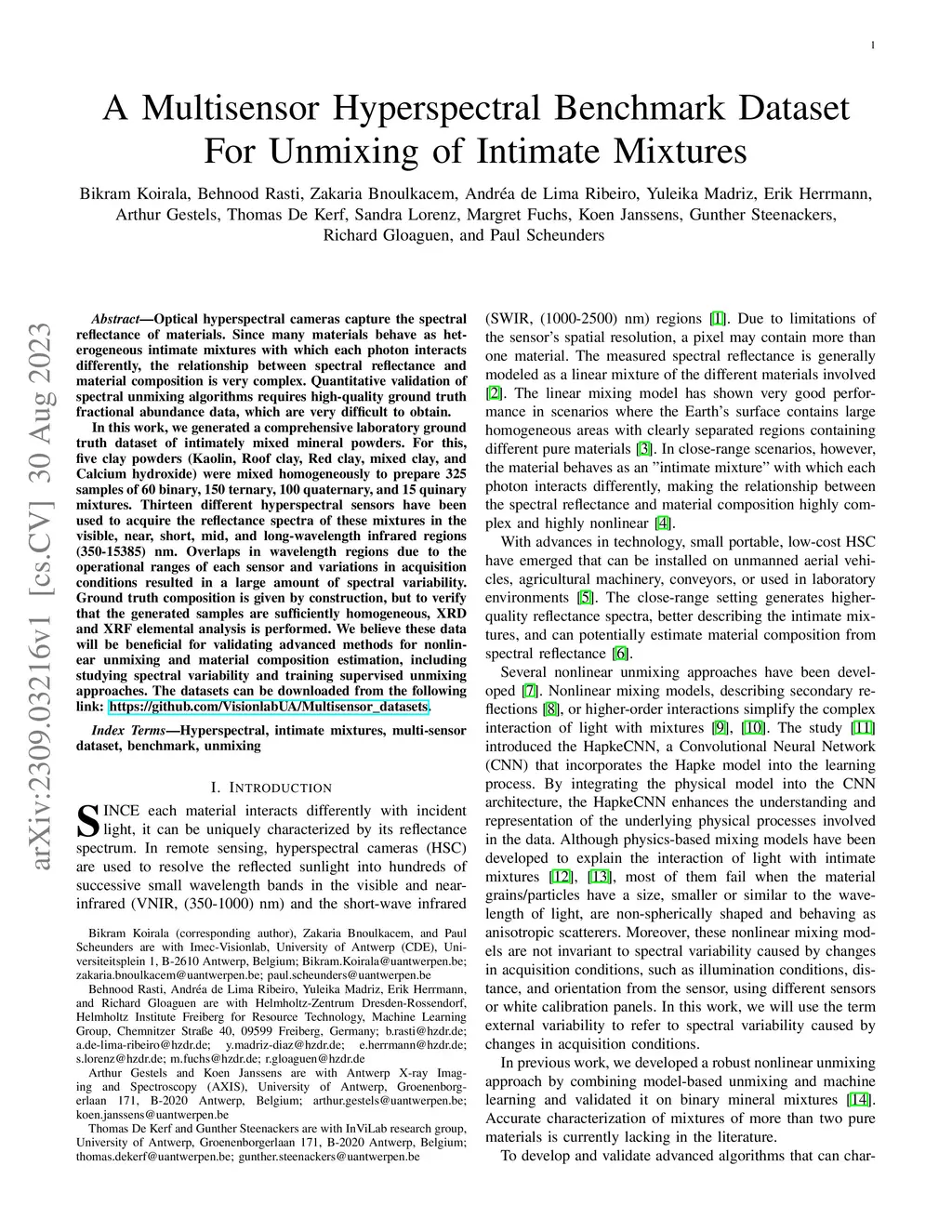 A Multisensor Hyperspectral Benchmark Dataset For Unmixing of Intimate