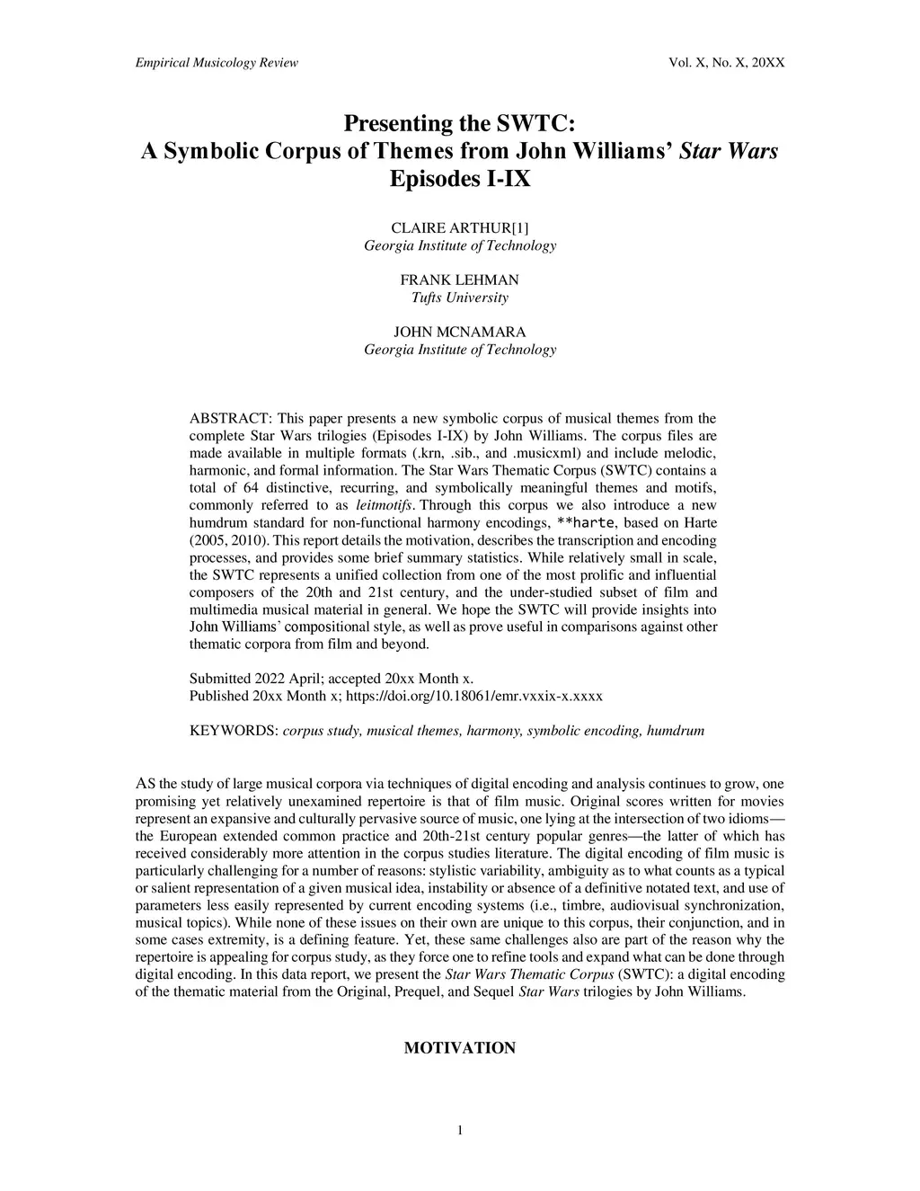 Presenting the SWTC: A Symbolic Corpus of Themes from John Williams'