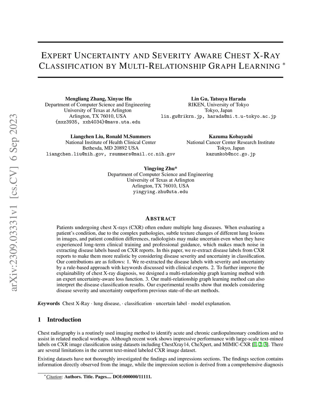 Patients undergoing chest X-rays (CXR) often endure multiple lung diseases. When evaluating a patient's condition, due to the complex pathologies, subtle texture changes of different lung lesions in images, and patient condition differences, radiologists may make uncertain even when they have experienced long-term clinical training and professional guidance, which makes much noise in extracting disease labels based on CXR reports. In this paper, we re-extract disease labels from CXR reports to make them more realistic by considering disease severity and uncertainty in classification. Our contributions are as follows: 1. We re-extracted the disease labels with severity and uncertainty by a rule-based approach with keywords discussed with clinical experts. 2. To further improve the explainability of chest X-ray diagnosis, we designed a multi-relationship graph learning method with an expert uncertainty-aware loss function. 3. Our multi-relationship graph learning method can also interpret the disease classification results. Our experimental results show that models considering disease severity and uncertainty outperform previous state-of-the-art methods.