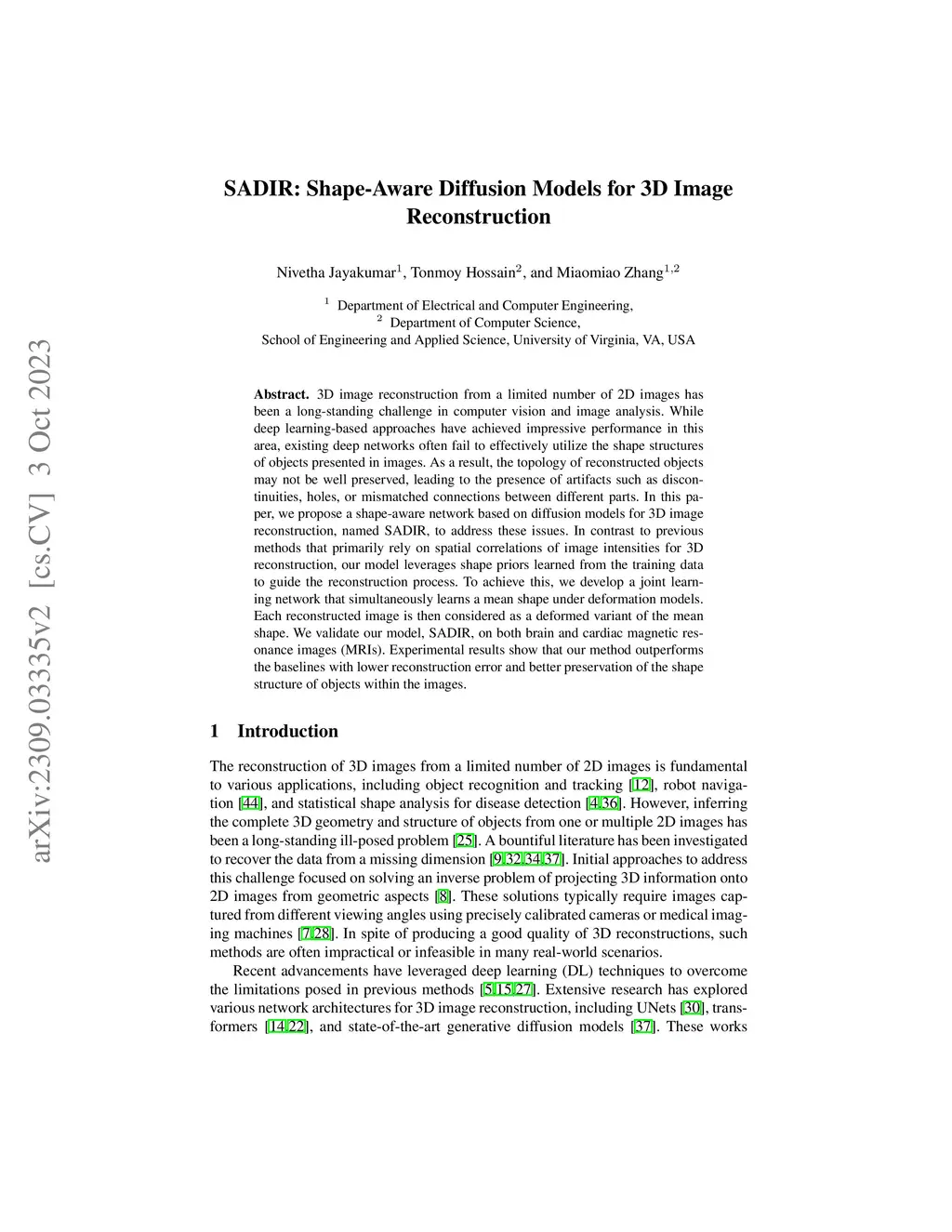 SADIR: Shape-Aware Diffusion Models for 3D Image Reconstruction