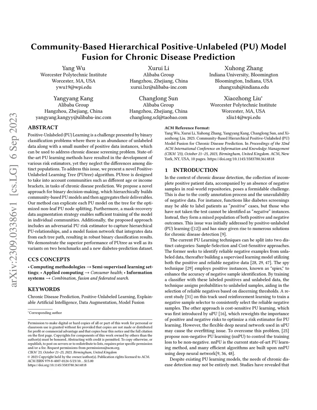 Community-Based Hierarchical Positive-Unlabeled (PU) Model Fusion for