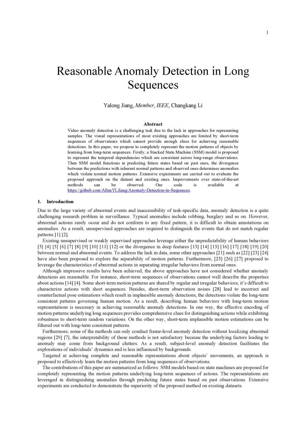 Video anomaly detection is a challenging task due to the lack in approaches for representing samples. The visual representations of most existing approaches are limited by short-term sequences of observations which cannot provide enough clues for achieving reasonable detections. In this paper, we propose to completely represent the motion patterns of objects by learning from long-term sequences. Firstly, a Stacked State Machine (SSM) model is proposed to represent the temporal dependencies which are consistent across long-range observations. Then SSM model functions in predicting future states based on past ones, the divergence between the predictions with inherent normal patterns and observed ones determines anomalies which violate normal motion patterns. Extensive experiments are carried out to evaluate the proposed approach on the dataset and existing ones. Improvements over state-of-the-art methods can be observed. Our code is available at https://github.com/AllenYLJiang/Anomaly-Detection-in-Sequences.