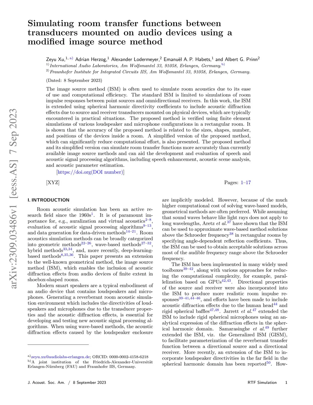 Simulating room transfer functions between transducers mounted on audio