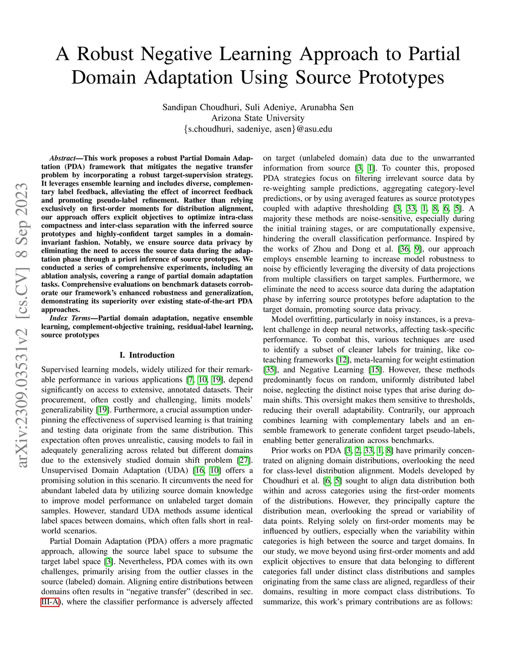 A Robust Negative Learning Approach to Partial Domain Adaptation Using