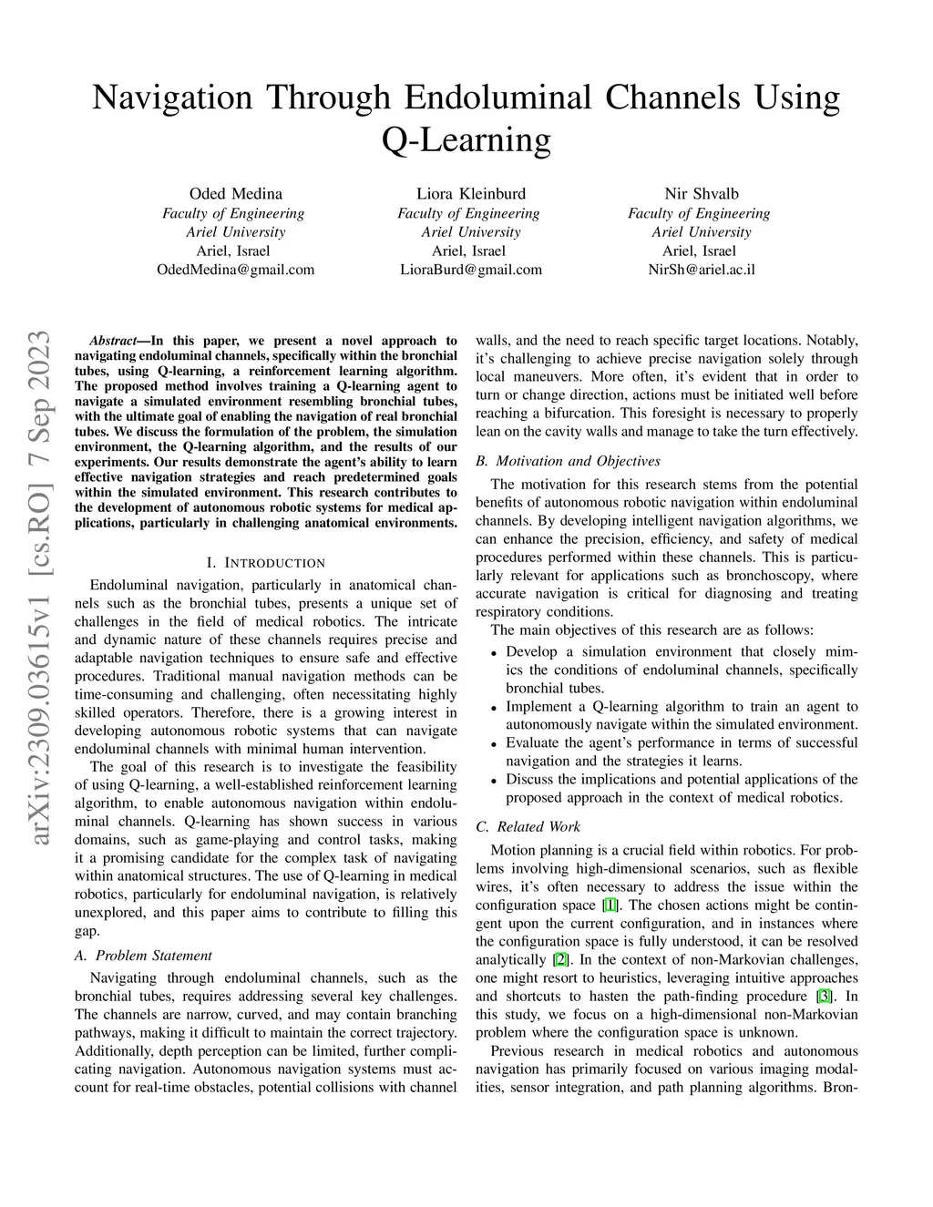 Navigation Through Endoluminal Channels Using Q-Learning