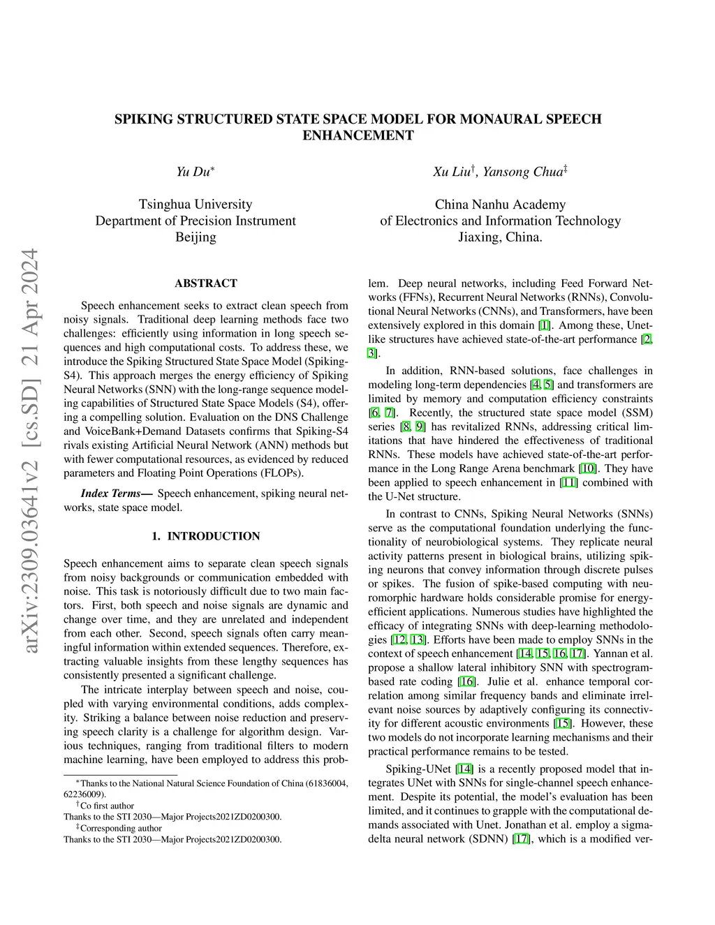 Spiking Structured State Space Model for Monaural Speech Enhancement