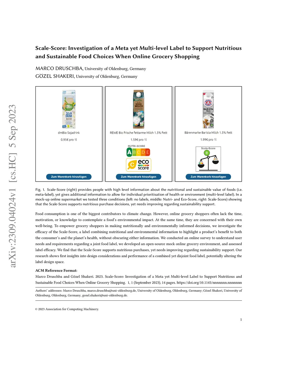 Food consumption is one of the biggest contributors to climate change. However, online grocery shoppers often lack the time, motivation, or knowledge to contemplate a food's environmental impact. At the same time, they are concerned with their own well-being. To empower grocery shoppers in making nutritionally and environmentally informed decisions, we investigate the efficacy of the Scale-Score, a label combining nutritional and environmental information to highlight a product's benefit to both the consumer's and the planet's health, without obscuring either information. We conducted an online survey to understand user needs and requirements regarding a joint food label, we developed an open-source mock online grocery environment, and assessed label efficacy. We find that the Scale-Score supports nutritious purchases, yet needs improving regarding sustainability support. Our research shows first insights into design considerations and performance of a combined yet disjoint food label, potentially altering the label design space.
