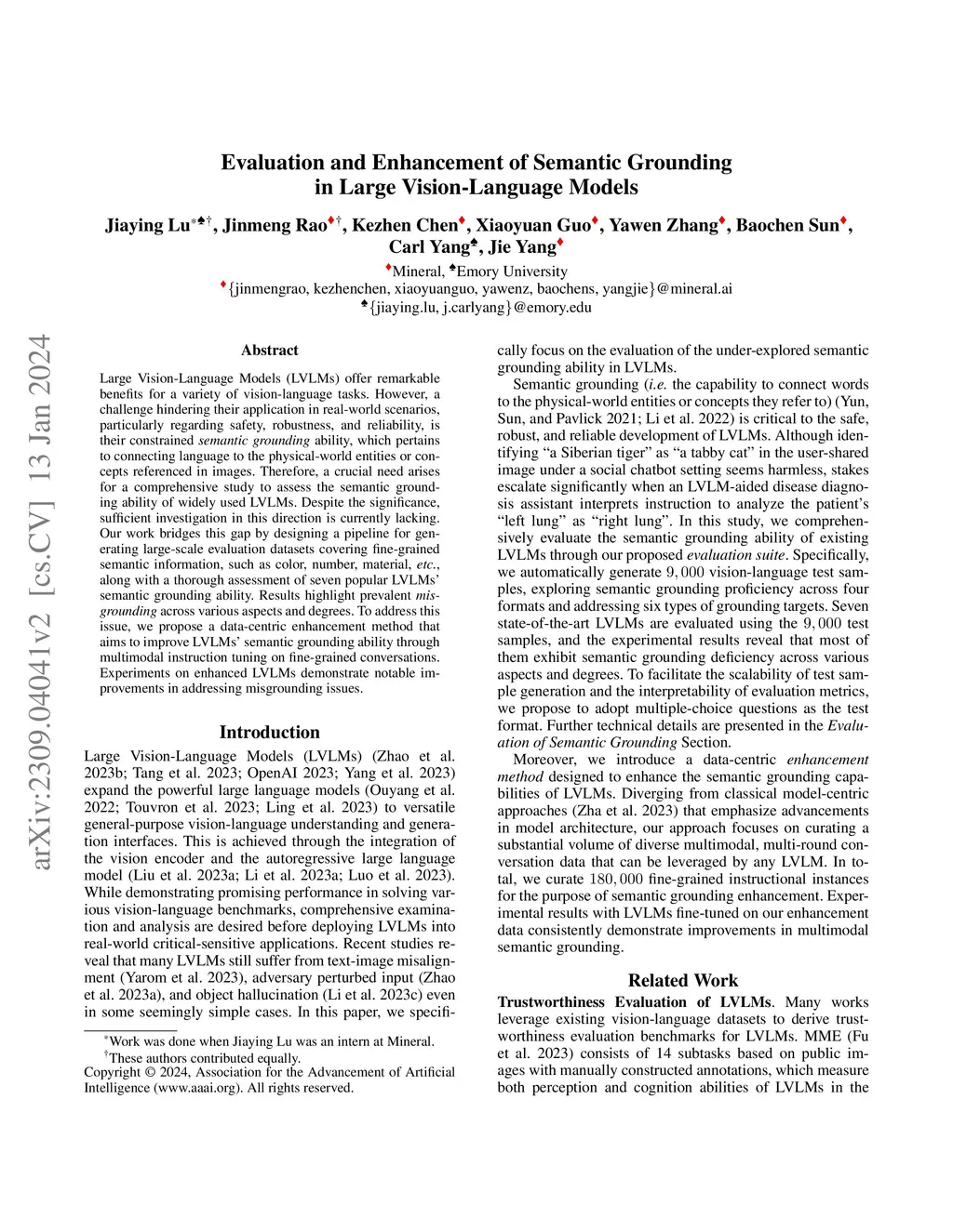 Large Vision-Language Models (LVLMs) offer remarkable benefits for a variety of vision-language tasks. However, a challenge hindering their application in real-world scenarios, particularly regarding safety, robustness, and reliability, is their constrained semantic grounding ability, which pertains to connecting language to the physical-world entities or concepts referenced in images. Therefore, a crucial need arises for a comprehensive study to assess the semantic grounding ability of widely used LVLMs. Despite the significance, sufficient investigation in this direction is currently lacking. Our work bridges this gap by designing a pipeline for generating large-scale evaluation datasets covering fine-grained semantic information, such as color, number, material, etc., along with a thorough assessment of seven popular LVLMs' semantic grounding ability. Results highlight prevalent misgrounding across various aspects and degrees. To address this issue, we propose a data-centric enhancement method that aims to improve LVLMs' semantic grounding ability through multimodal instruction tuning on fine-grained conversations. Experiments on enhanced LVLMs demonstrate notable improvements in addressing misgrounding issues.