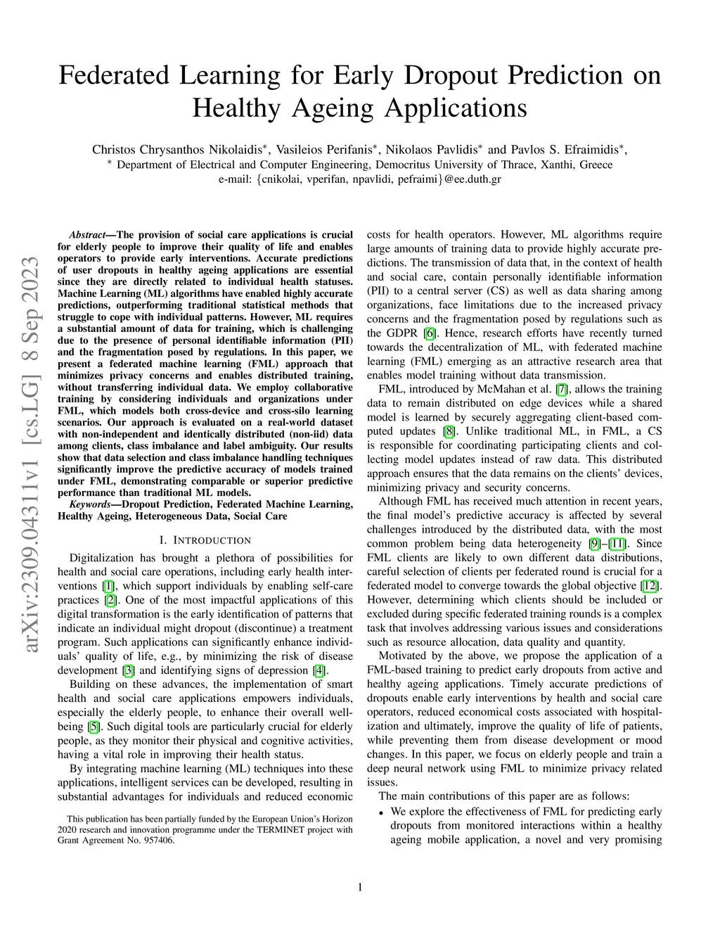 Federated Learning for Early Dropout Prediction on Healthy Ageing
