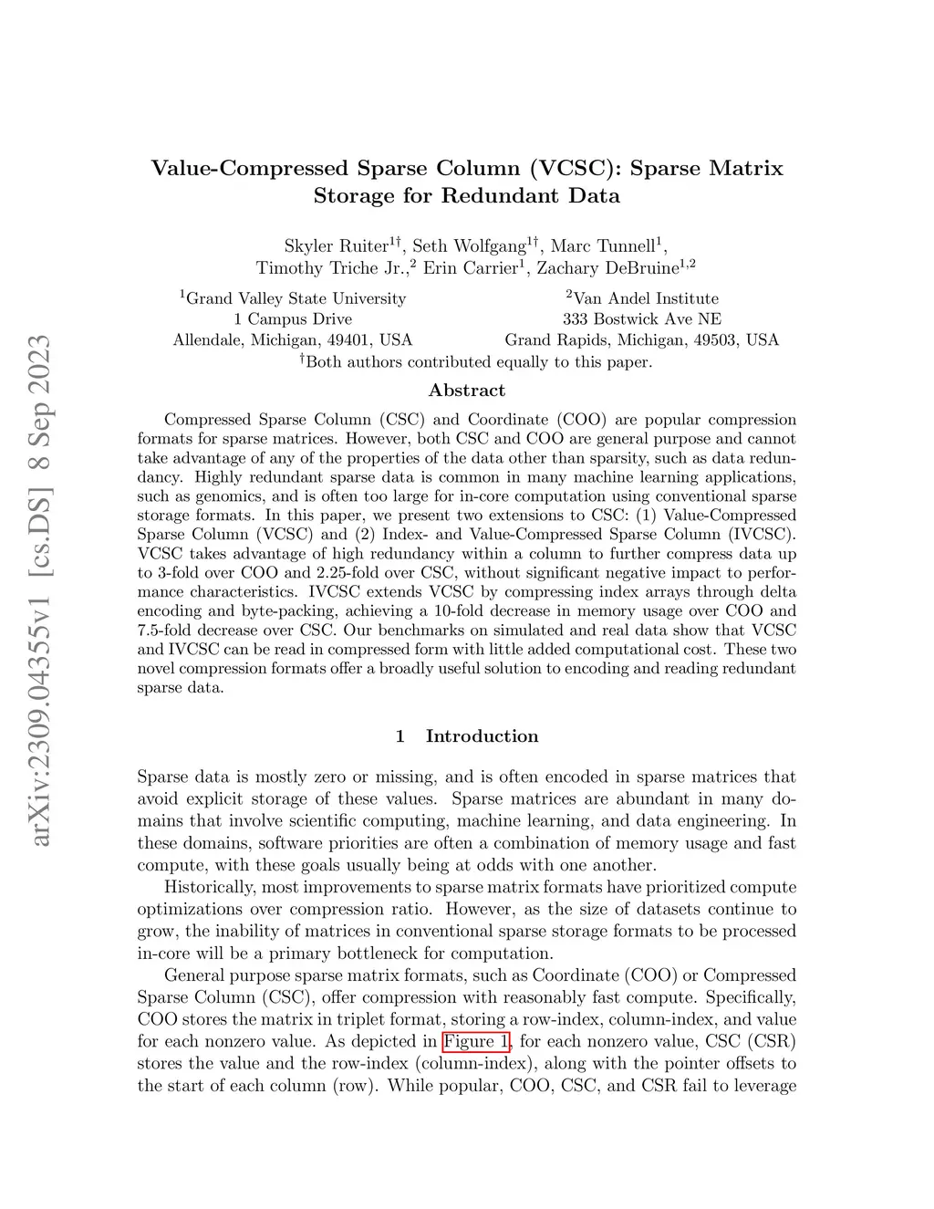 Value-Compressed Sparse Column (VCSC): Sparse Matrix Storage for Redundant Data