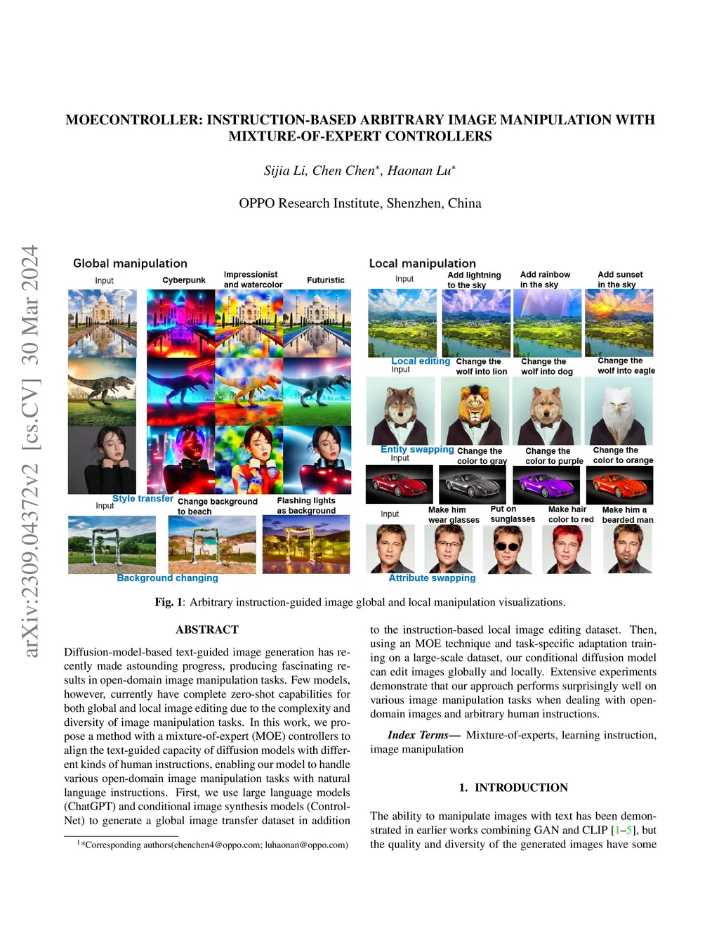 MoEController: Instruction-based Arbitrary Image Manipulation with