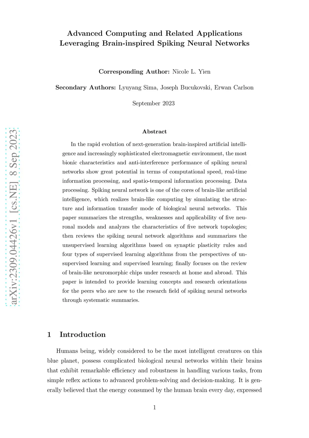 Advanced Computing and Related Applications Leveraging Brain-inspired