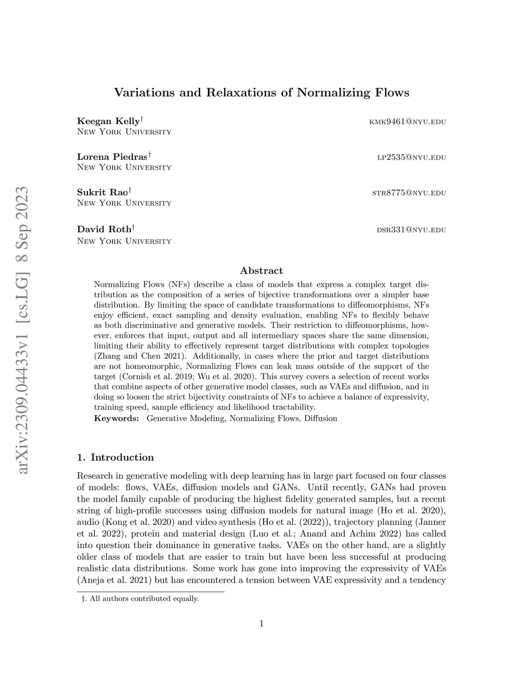Normalizing Flows (NFs) describe a class of models that express a complex target distribution as the composition of a series of bijective transformations over a simpler base distribution. By limiting the space of candidate transformations to diffeomorphisms, NFs enjoy efficient, exact sampling and density evaluation, enabling NFs to flexibly behave as both discriminative and generative models. Their restriction to diffeomorphisms, however, enforces that input, output and all intermediary spaces share the same dimension, limiting their ability to effectively represent target distributions with complex topologies. Additionally, in cases where the prior and target distributions are not homeomorphic, Normalizing Flows can leak mass outside of the support of the target. This survey covers a selection of recent works that combine aspects of other generative model classes, such as VAEs and score-based diffusion, and in doing so loosen the strict bijectivity constraints of NFs to achieve a balance of expressivity, training speed, sample efficiency and likelihood tractability.