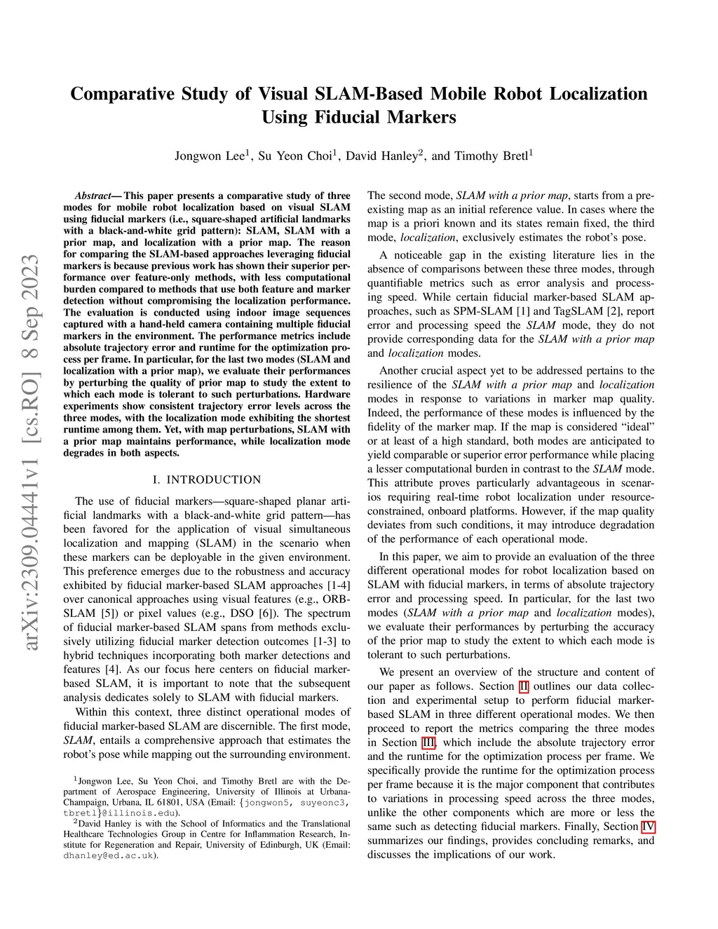This paper presents a comparative study of three modes for mobile robot localization based on visual SLAM using fiducial markers (i.e., square-shaped artificial landmarks with a black-and-white grid pattern): SLAM, SLAM with a prior map, and localization with a prior map. The reason for comparing the SLAM-based approaches leveraging fiducial markers is because previous work has shown their superior performance over feature-only methods, with less computational burden compared to methods that use both feature and marker detection without compromising the localization performance. The evaluation is conducted using indoor image sequences captured with a hand-held camera containing multiple fiducial markers in the environment. The performance metrics include absolute trajectory error and runtime for the optimization process per frame. In particular, for the last two modes (SLAM and localization with a prior map), we evaluate their performances by perturbing the quality of prior map to study the extent to which each mode is tolerant to such perturbations. Hardware experiments show consistent trajectory error levels across the three modes, with the localization mode exhibiting the shortest runtime among them. Yet, with map perturbations, SLAM with a prior map maintains performance, while localization mode degrades in both aspects.