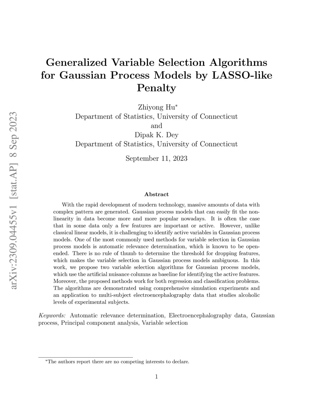 With the rapid development of modern technology, massive amounts of data with complex pattern are generated. Gaussian process models that can easily fit the non-linearity in data become more and more popular nowadays. It is often the case that in some data only a few features are important or active. However, unlike classical linear models, it is challenging to identify active variables in Gaussian process models. One of the most commonly used methods for variable selection in Gaussian process models is automatic relevance determination, which is known to be open-ended. There is no rule of thumb to determine the threshold for dropping features, which makes the variable selection in Gaussian process models ambiguous. In this work, we propose two variable selection algorithms for Gaussian process models, which use the artificial nuisance columns as baseline for identifying the active features. Moreover, the proposed methods work for both regression and classification problems. The algorithms are demonstrated using comprehensive simulation experiments and an application to multi-subject electroencephalography data that studies alcoholic levels of experimental subjects.