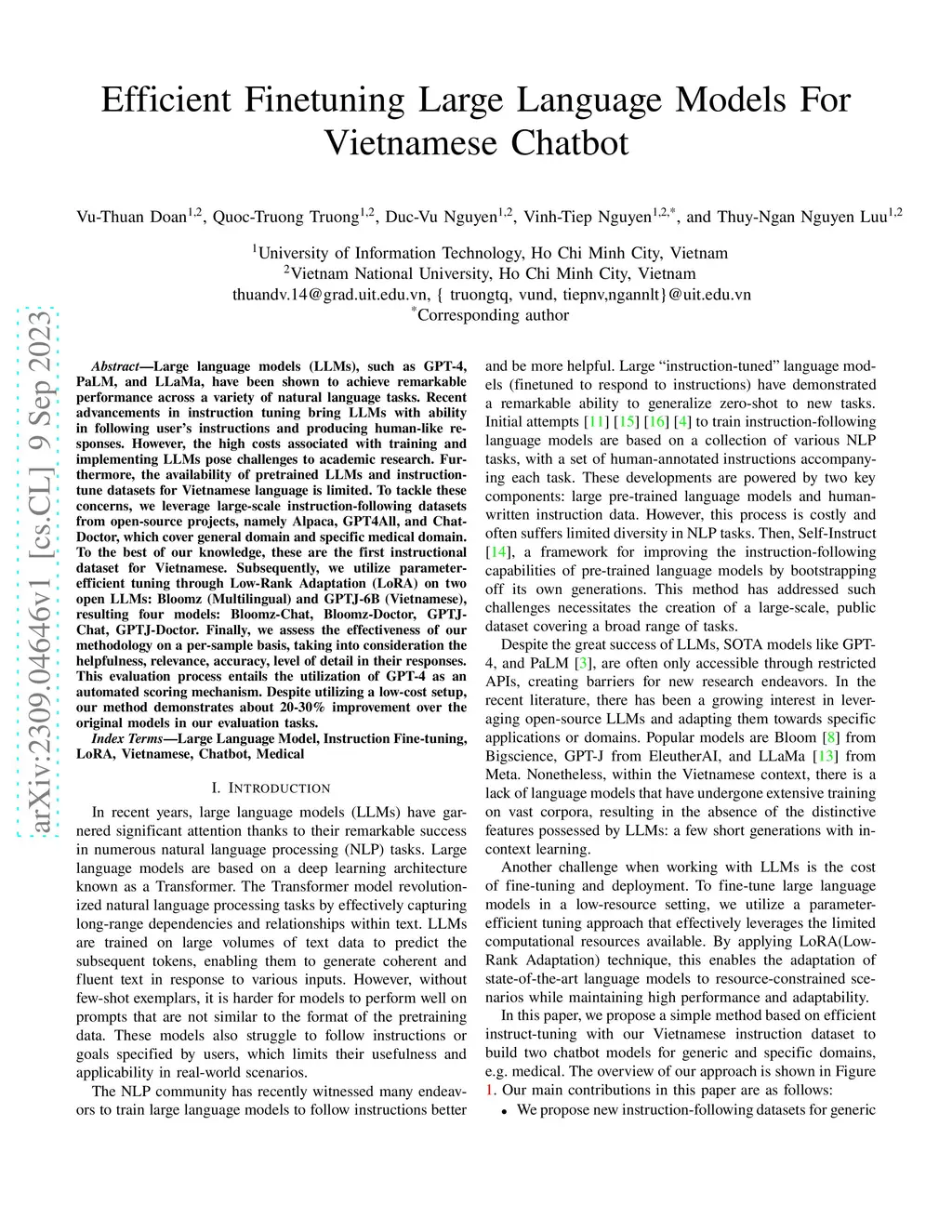 Efficient Finetuning Large Language Models For Vietnamese Chatbot
