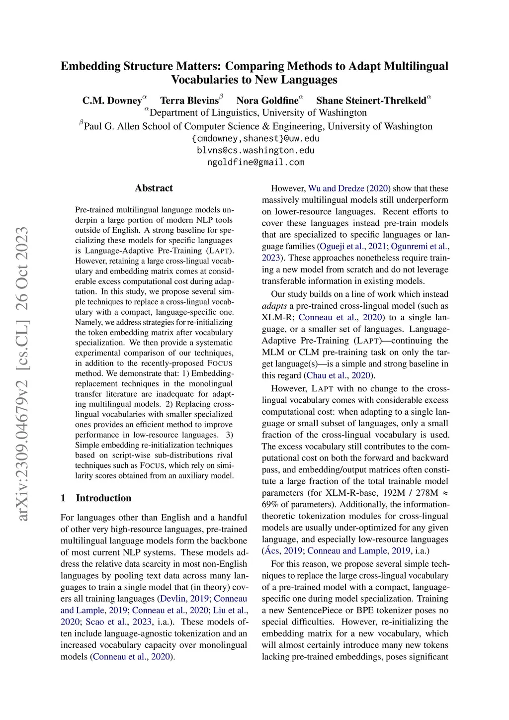 Embedding structure matters: Comparing methods to adapt multilingual