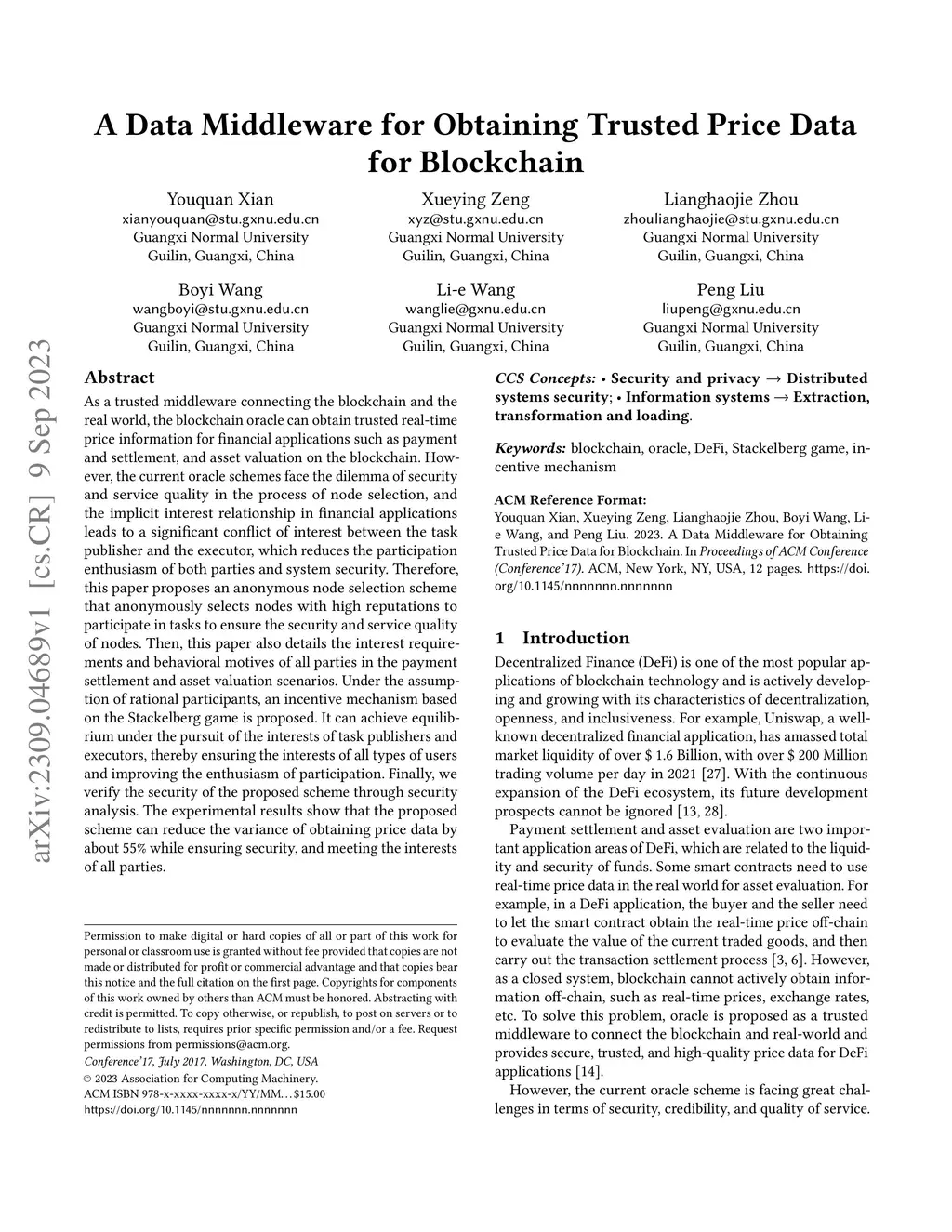 A Data Middleware for Obtaining Trusted Price Data for Blockchain