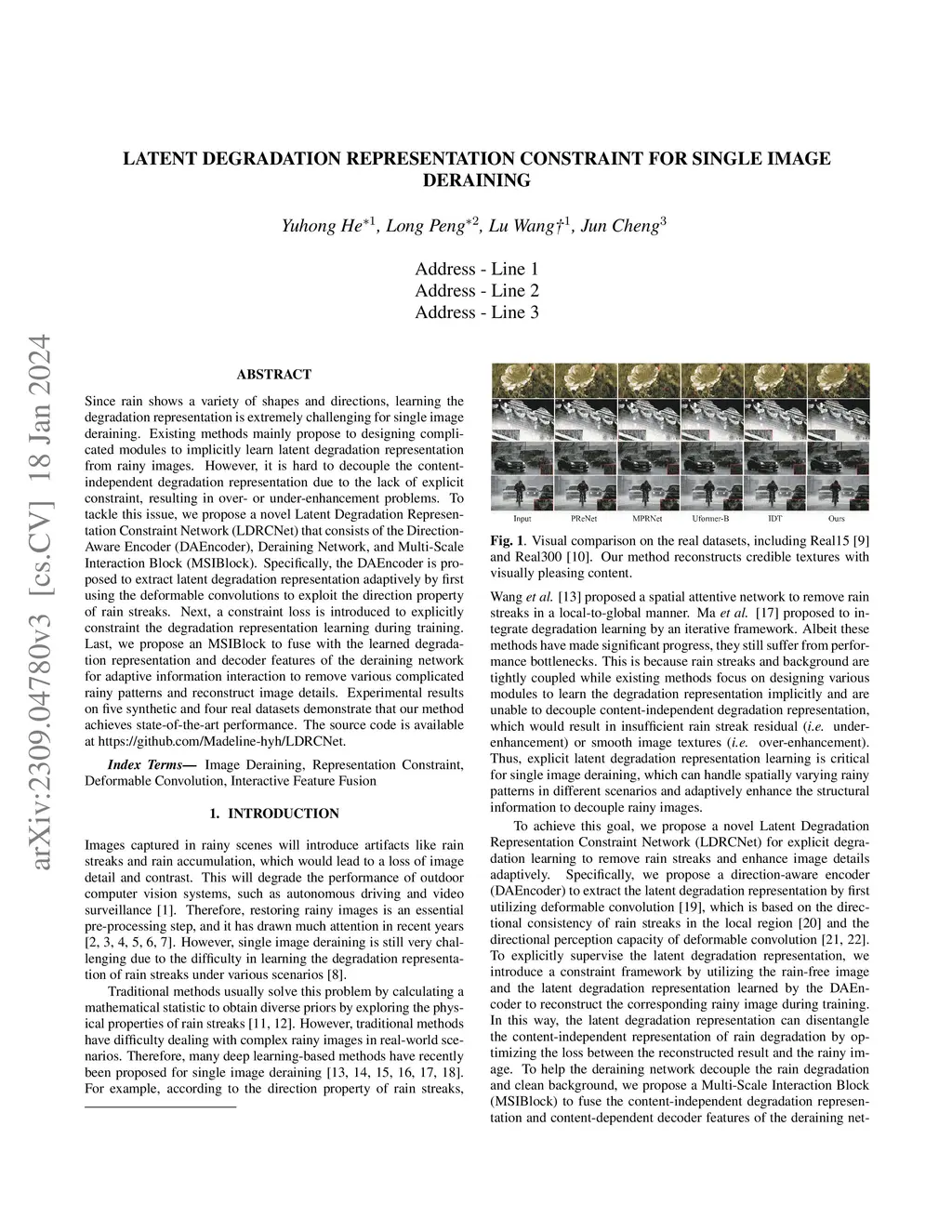Latent Degradation Representation Constraint for Single Image Deraining