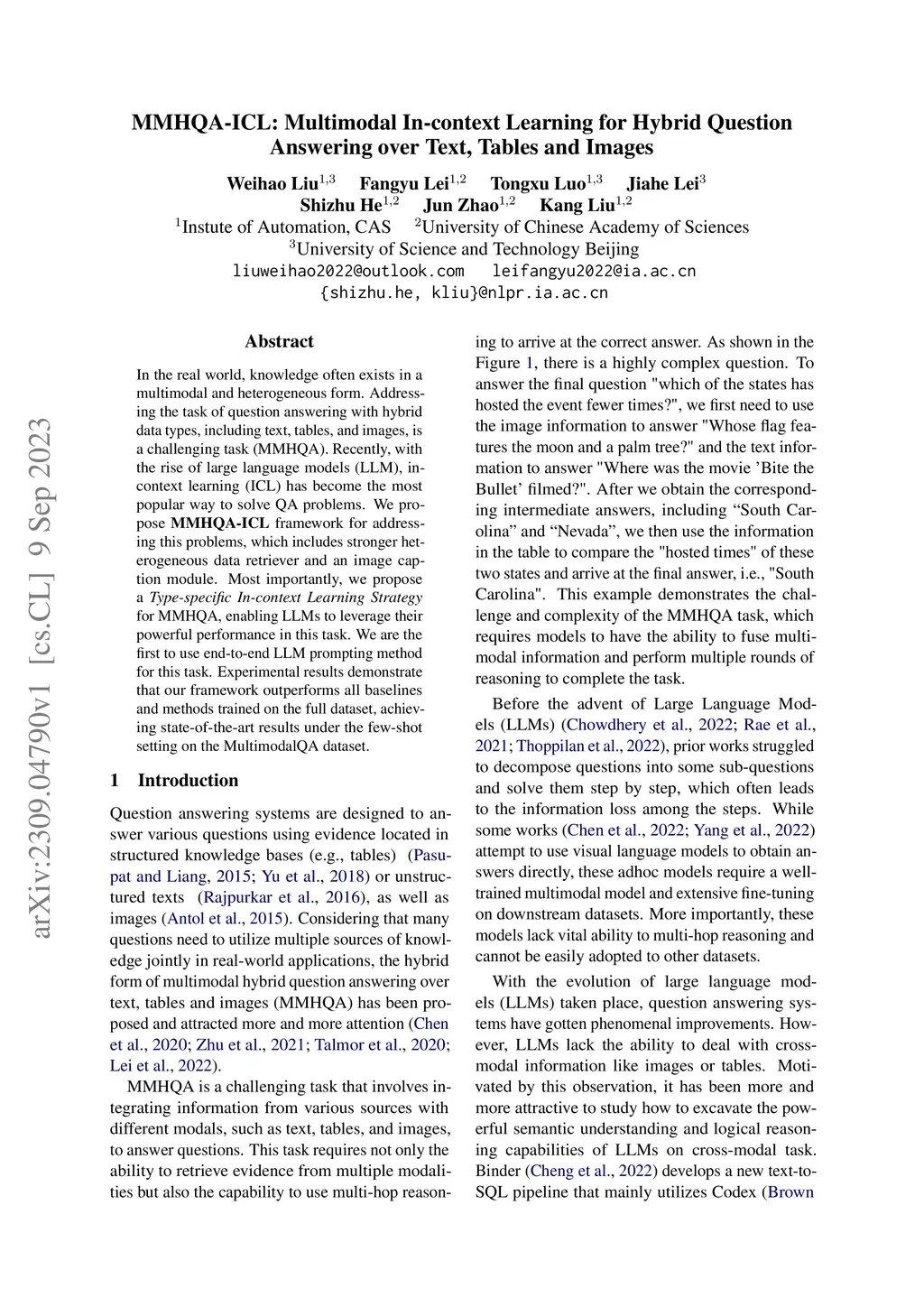 MMHQA-ICL: Multimodal In-context Learning for Hybrid Question Answering