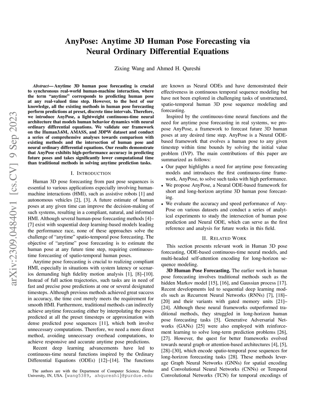 AnyPose: Anytime 3D Human Pose Forecasting via Neural Ordinary