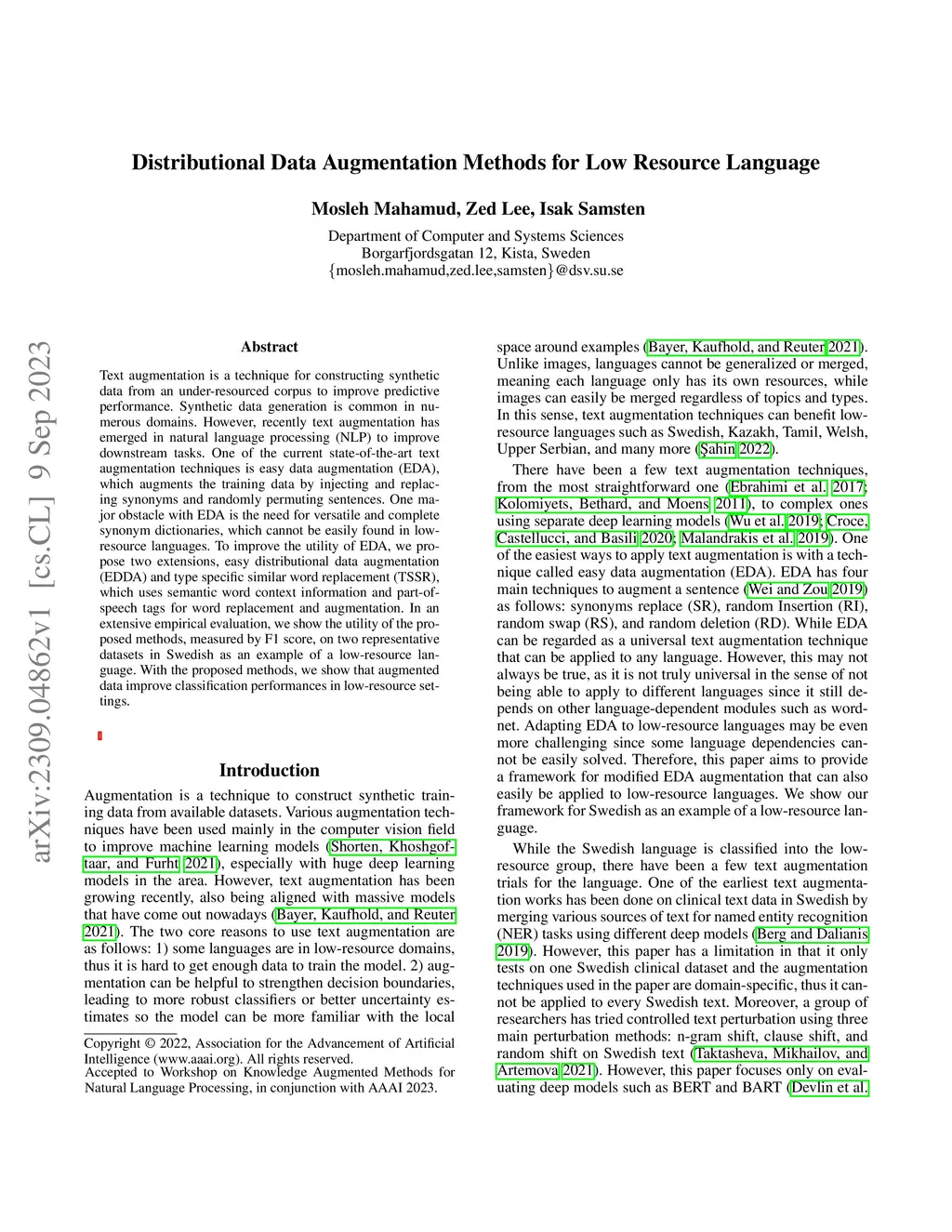 Distributional Data Augmentation Methods for Low Resource Language