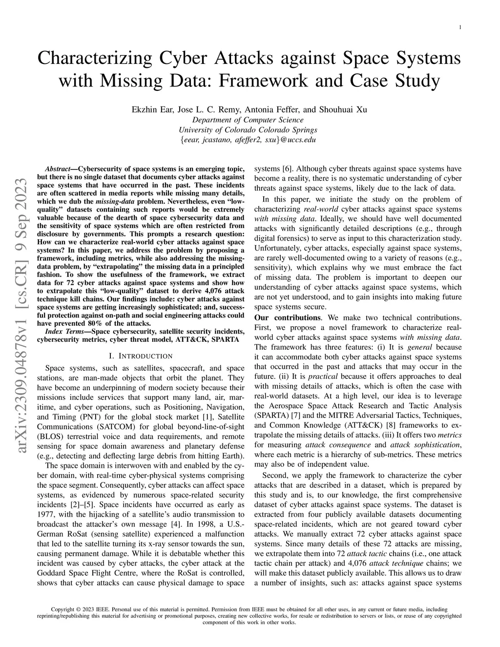 Characterizing Cyber Attacks against Space Systems with Missing Data: