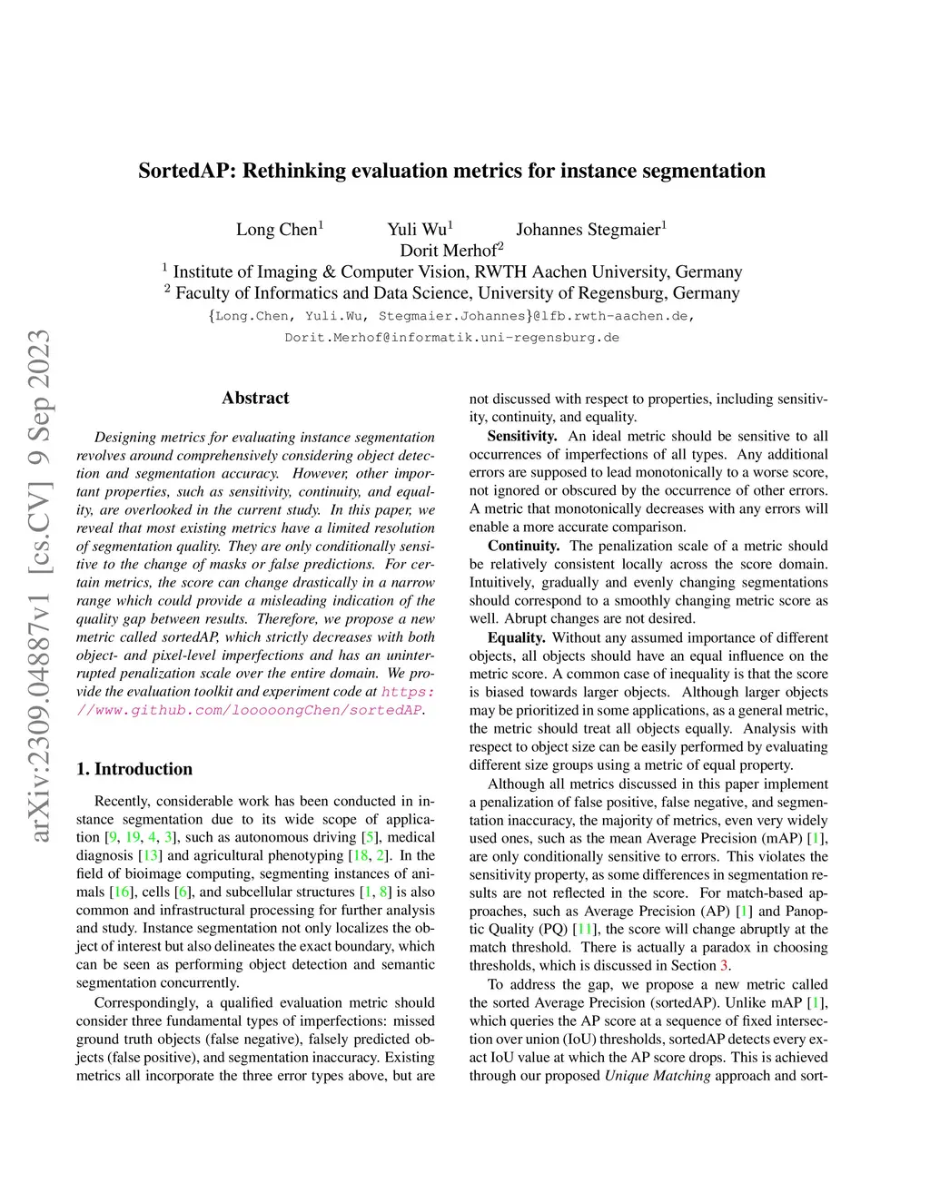 SortedAP: Rethinking evaluation metrics for instance segmentation