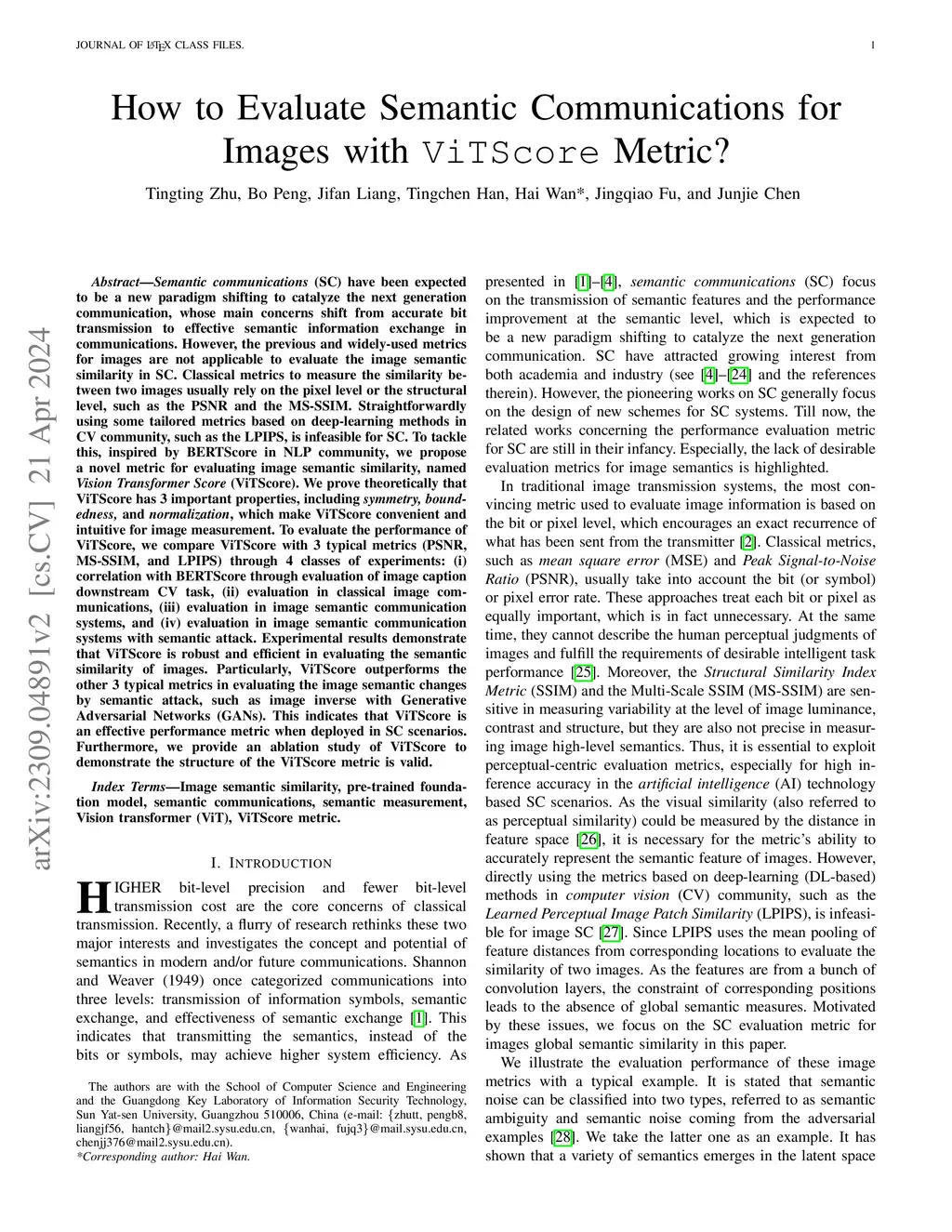 How to Evaluate Semantic Communications for Images with ViTScore Metric?