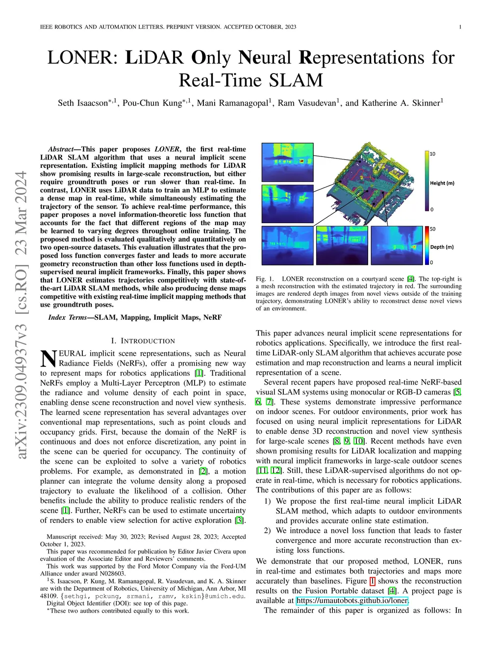 LONER: LiDAR Only Neural Representations for Real-Time SLAM