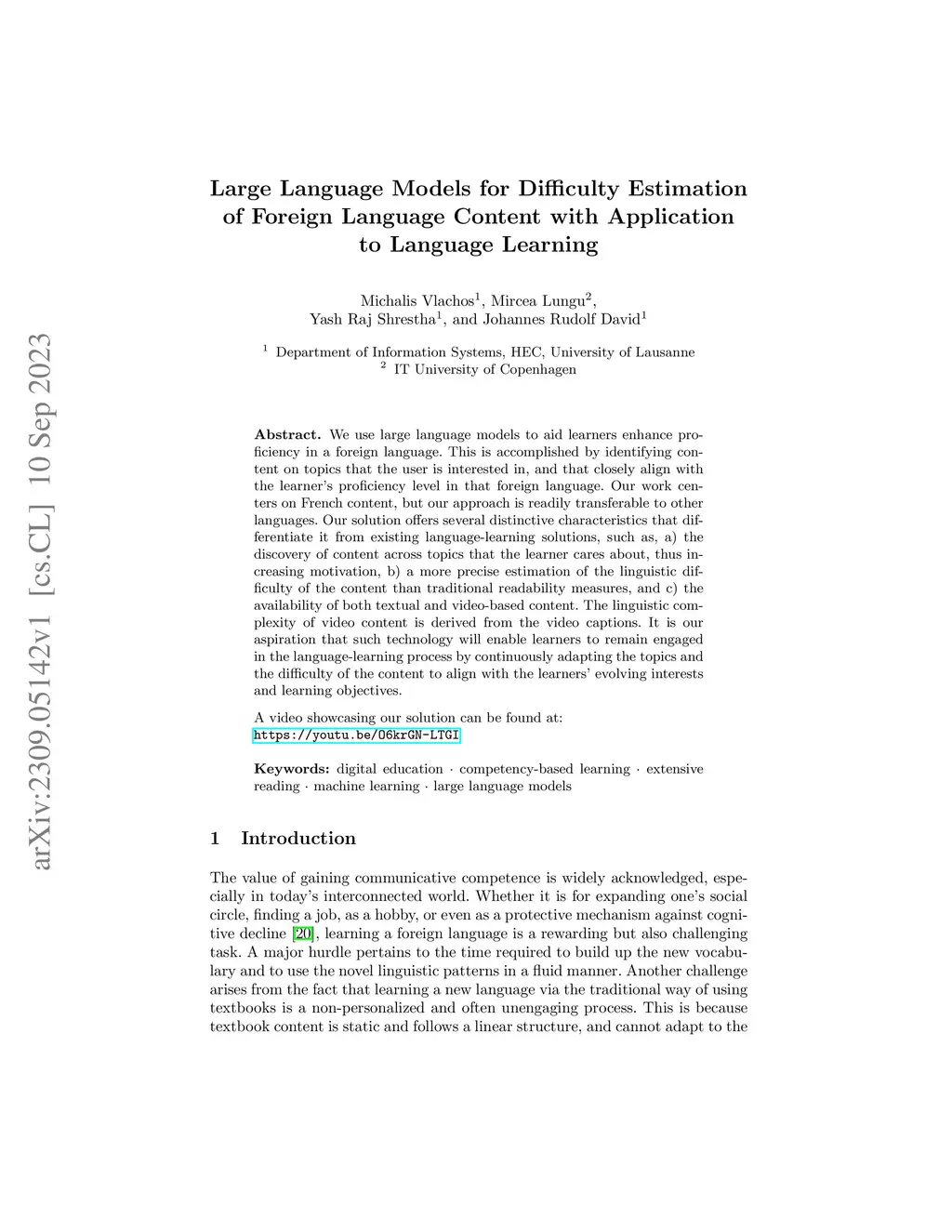 We use large language models to aid learners enhance proficiency in a foreign language. This is accomplished by identifying content on topics that the user is interested in, and that closely align with the learner's proficiency level in that foreign language. Our work centers on French content, but our approach is readily transferable to other languages. Our solution offers several distinctive characteristics that differentiate it from existing language-learning solutions, such as, a) the discovery of content across topics that the learner cares about, thus increasing motivation, b) a more precise estimation of the linguistic difficulty of the content than traditional readability measures, and c) the availability of both textual and video-based content. The linguistic complexity of video content is derived from the video captions. It is our aspiration that such technology will enable learners to remain engaged in the language-learning process by continuously adapting the topics and the difficulty of the content to align with the learners' evolving interests and learning objectives.