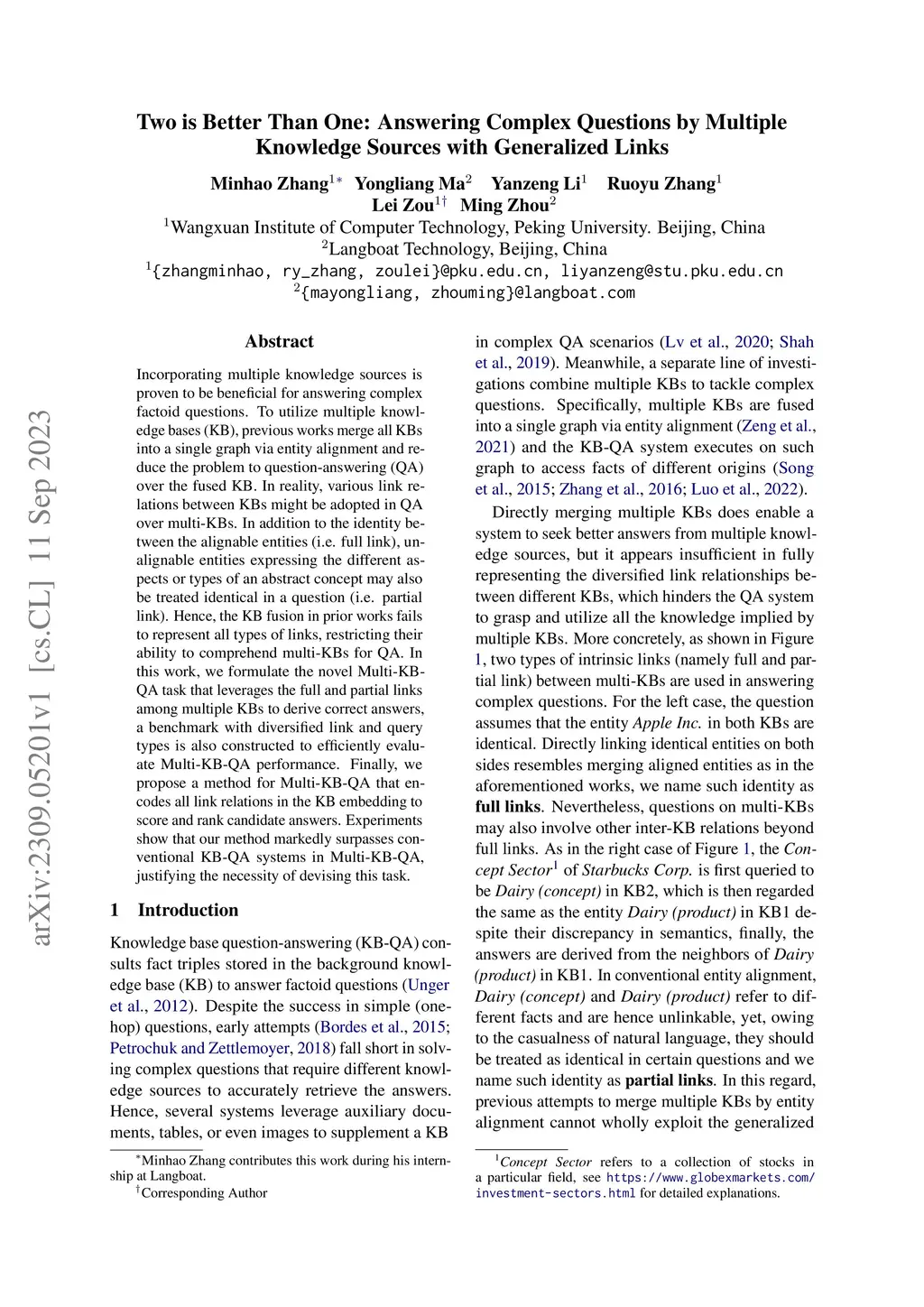Incorporating multiple knowledge sources is proven to be beneficial for answering complex factoid questions. To utilize multiple knowledge bases (KB), previous works merge all KBs into a single graph via entity alignment and reduce the problem to question-answering (QA) over the fused KB. In reality, various link relations between KBs might be adopted in QA over multi-KBs. In addition to the identity between the alignable entities (i.e. full link), unalignable entities expressing the different aspects or types of an abstract concept may also be treated identical in a question (i.e. partial link). Hence, the KB fusion in prior works fails to represent all types of links, restricting their ability to comprehend multi-KBs for QA. In this work, we formulate the novel Multi-KB-QA task that leverages the full and partial links among multiple KBs to derive correct answers, a benchmark with diversified link and query types is also constructed to efficiently evaluate Multi-KB-QA performance. Finally, we propose a method for Multi-KB-QA that encodes all link relations in the KB embedding to score and rank candidate answers. Experiments show that our method markedly surpasses conventional KB-QA systems in Multi-KB-QA, justifying the necessity of devising this task.
