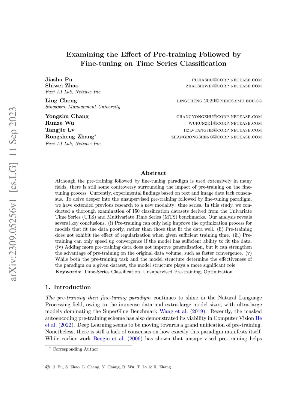 Examining the Effect of Pre-training on Time Series Classification