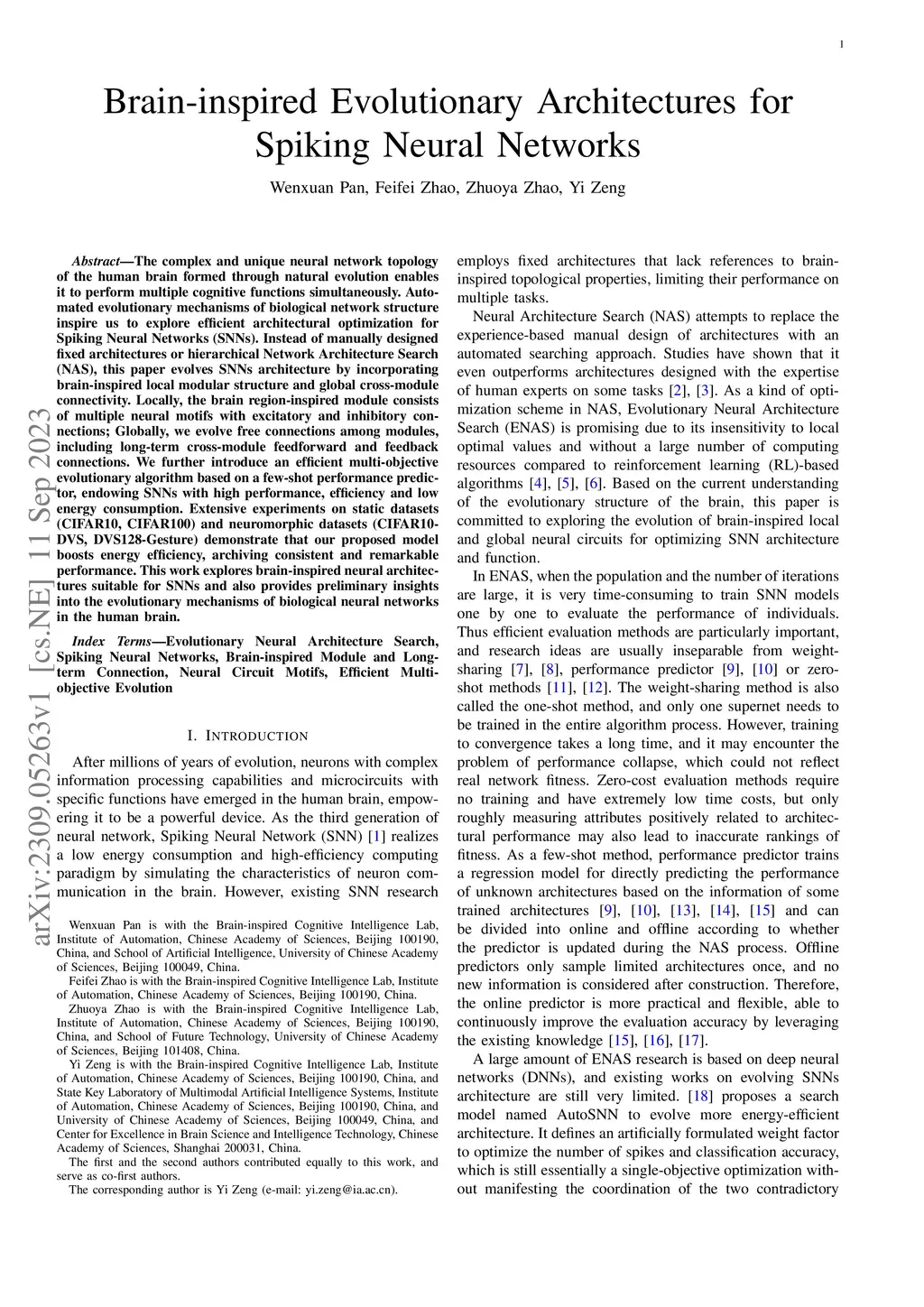 Brain-inspired Evolutionary Architectures for Spiking Neural Networks