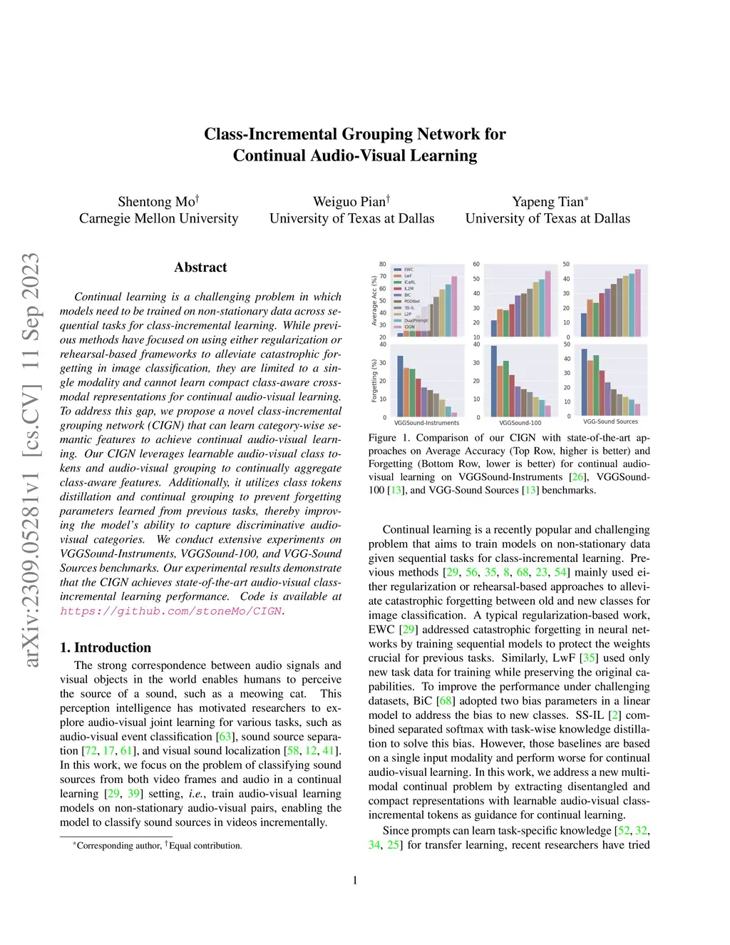 Class-Incremental Grouping Network for Continual Audio-Visual Learning