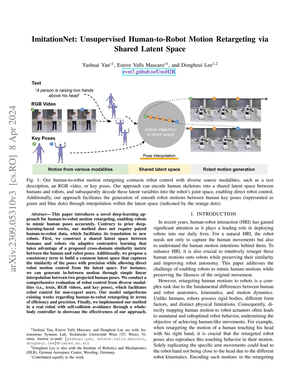 ImitationNet: Unsupervised Human-to-Robot Motion Retargeting via Shared